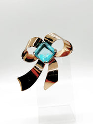 Sold out - Vintage Sterling Bow Brooch with Large Square Aqua Blue Stone