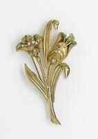 Vintage Wire Flower Brooch With Center Turquoise Trembler