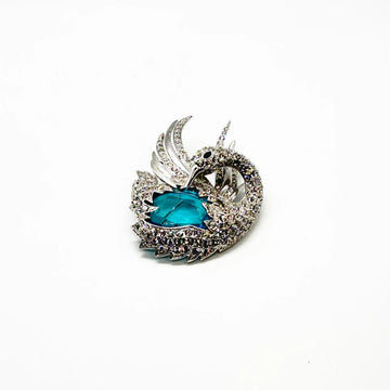 Expertly crafted from rhodium-plated silver-tone metal, the brooch features intricate pave-set Austrian crystals that brilliantly catch the light, complemented by a striking, massive, clear deep blue crystal as the focal point ofthe brooch. Thr dark blue eye adds a sophisticated and realistic detail and just the right placement.