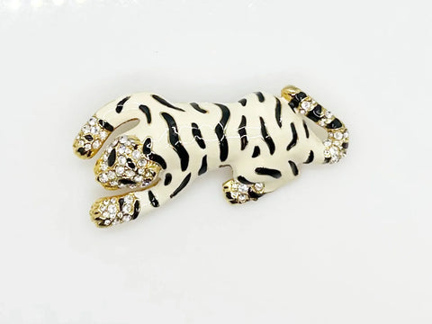 Elegant Vintage Gold Rose Brooch with Sparkling Accents