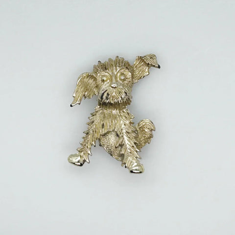 Yellow Scottie Dog with Polka Dot Bow Tie Vintage Celluloid Brooch Pin