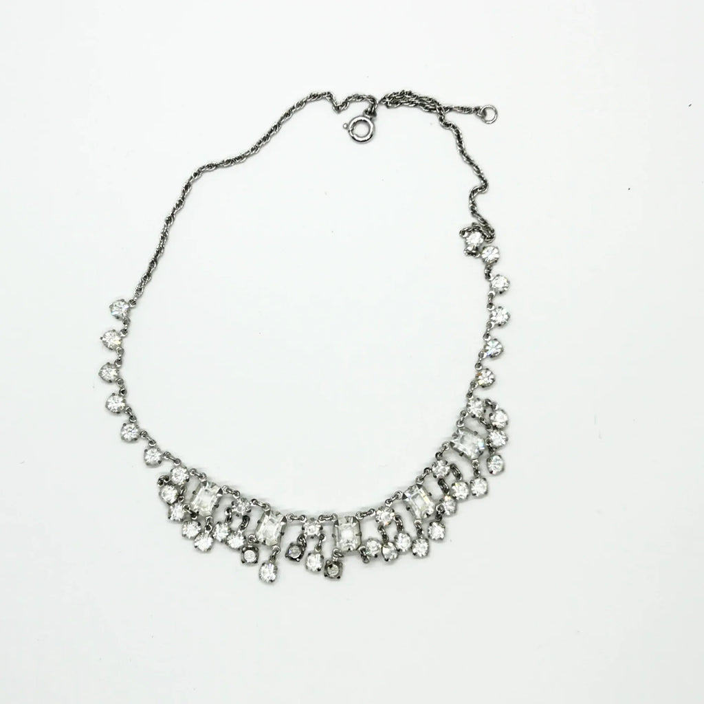 Glittering Art Deco Antique Open Back Crystal Necklace