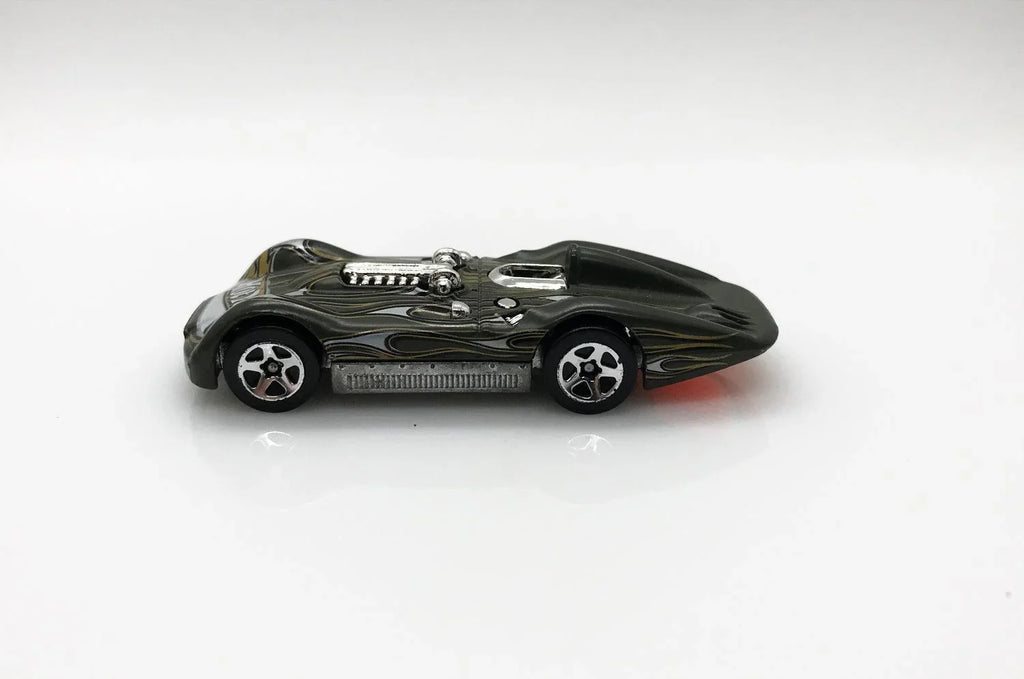 Heat Fleet 5-Pack, flat OT Green, with gold, black and white tampos, chrome interior and window. It was designed by Phil Riehlman, and is modeled after Howard Keck's Fuel Injection Special (1955). It has 5SP wheels and was made in China; 1:64 scale.