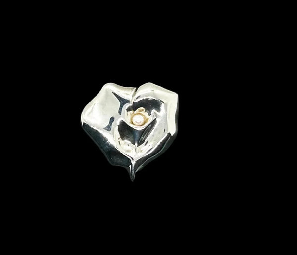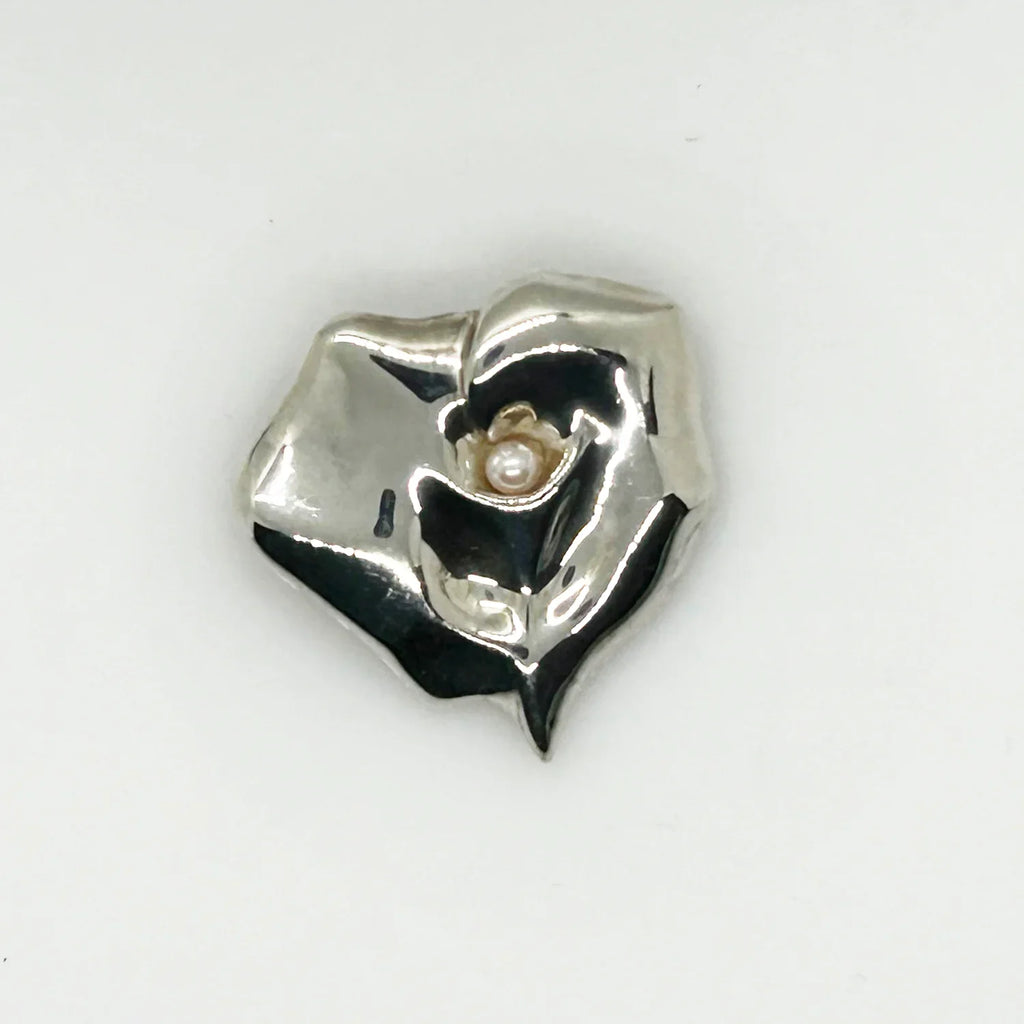 The design of this floral brooch captures the gentle curves and folds of a calla lily. The brooch’s sculpted surface creates a tactile experience reminiscent of soft, real petals. Notice how the form subtly hints at a heart shape, making it not only a tribute to flowers but also a symbol of love and elegance. Every angle of this rose brooch reveals thoughtful craftsmanship, appealing to those who appreciate refined details and romantic inspiration in jewelry.
