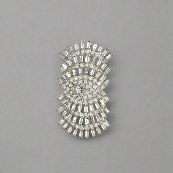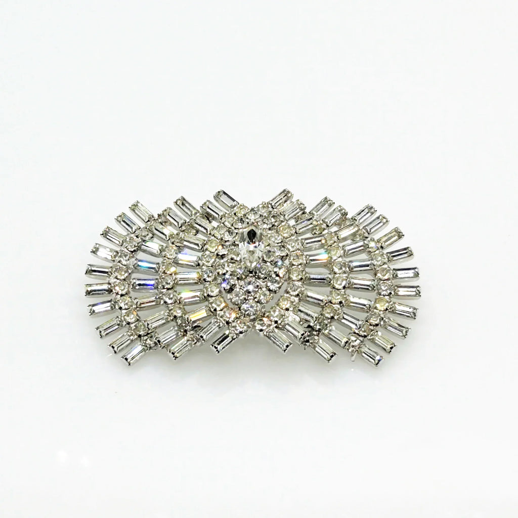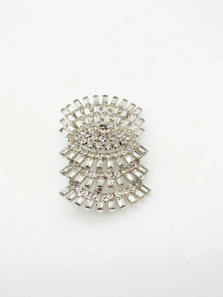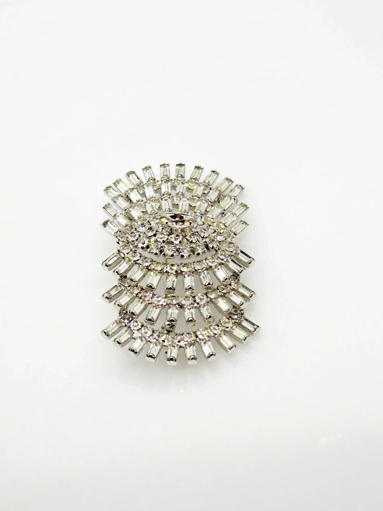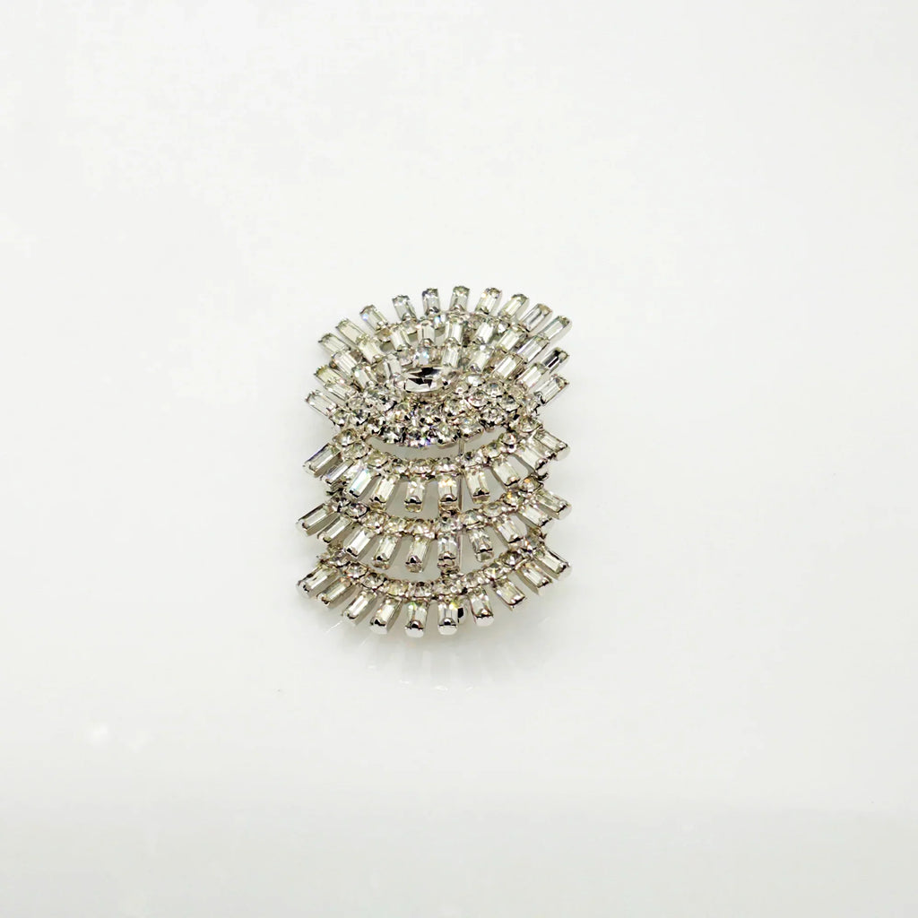 Geometric Deco Style Layered Vintage Rhinestone Brooch