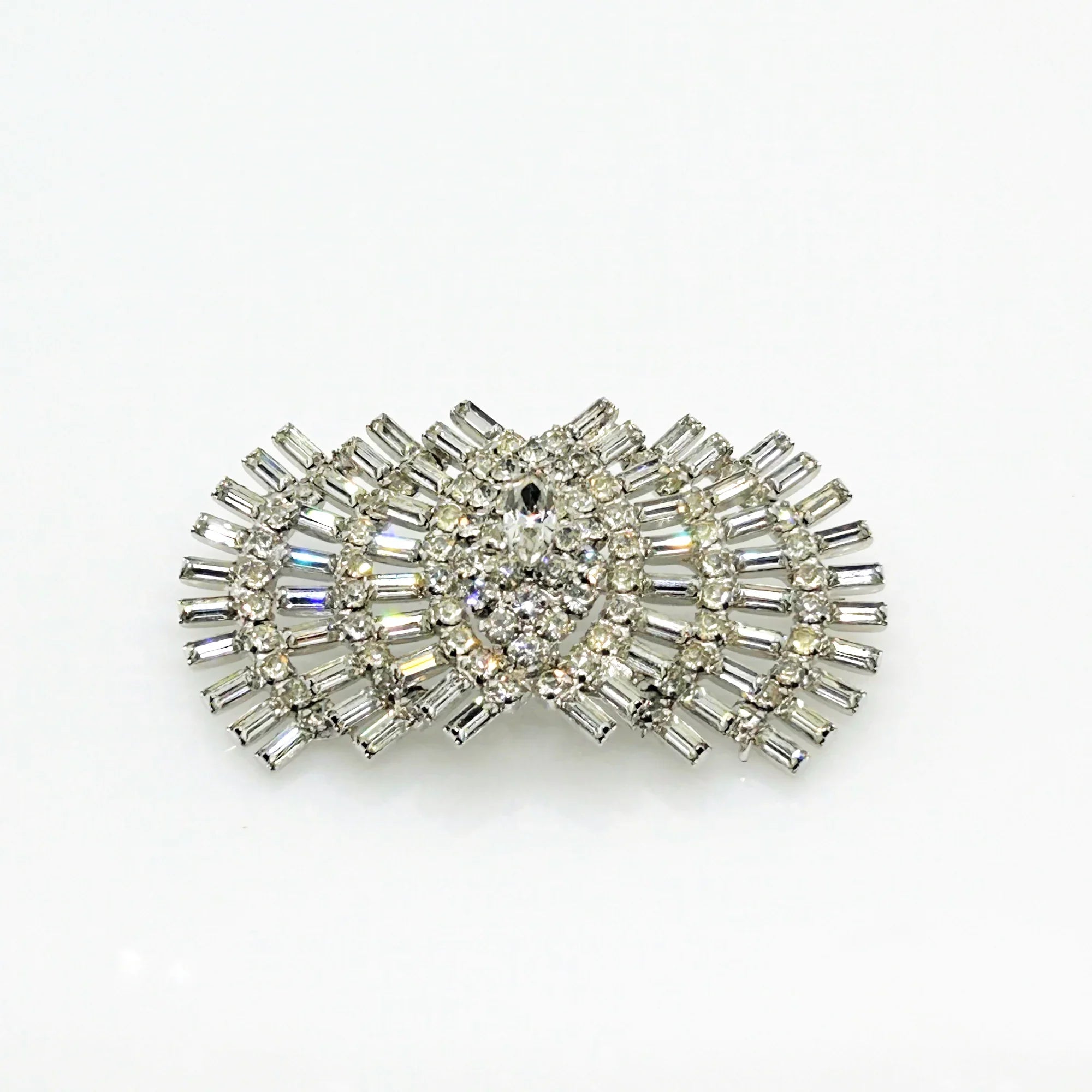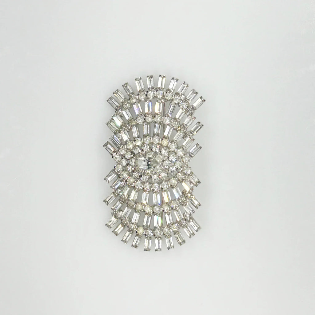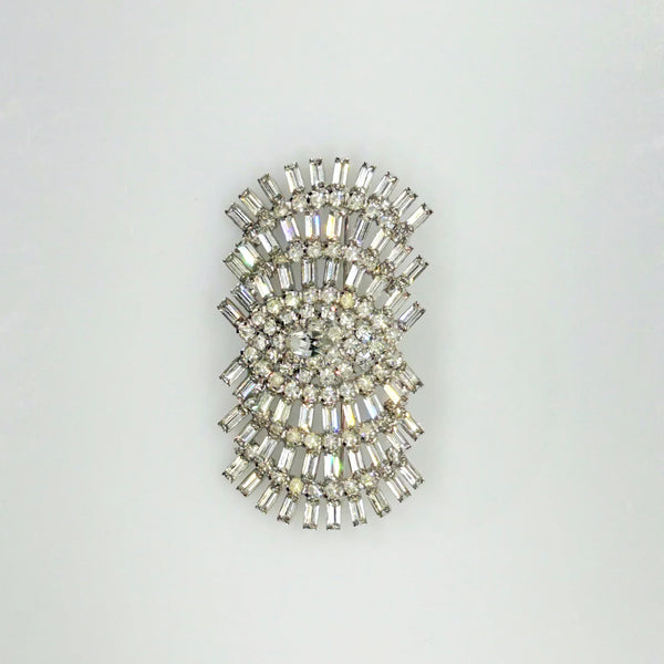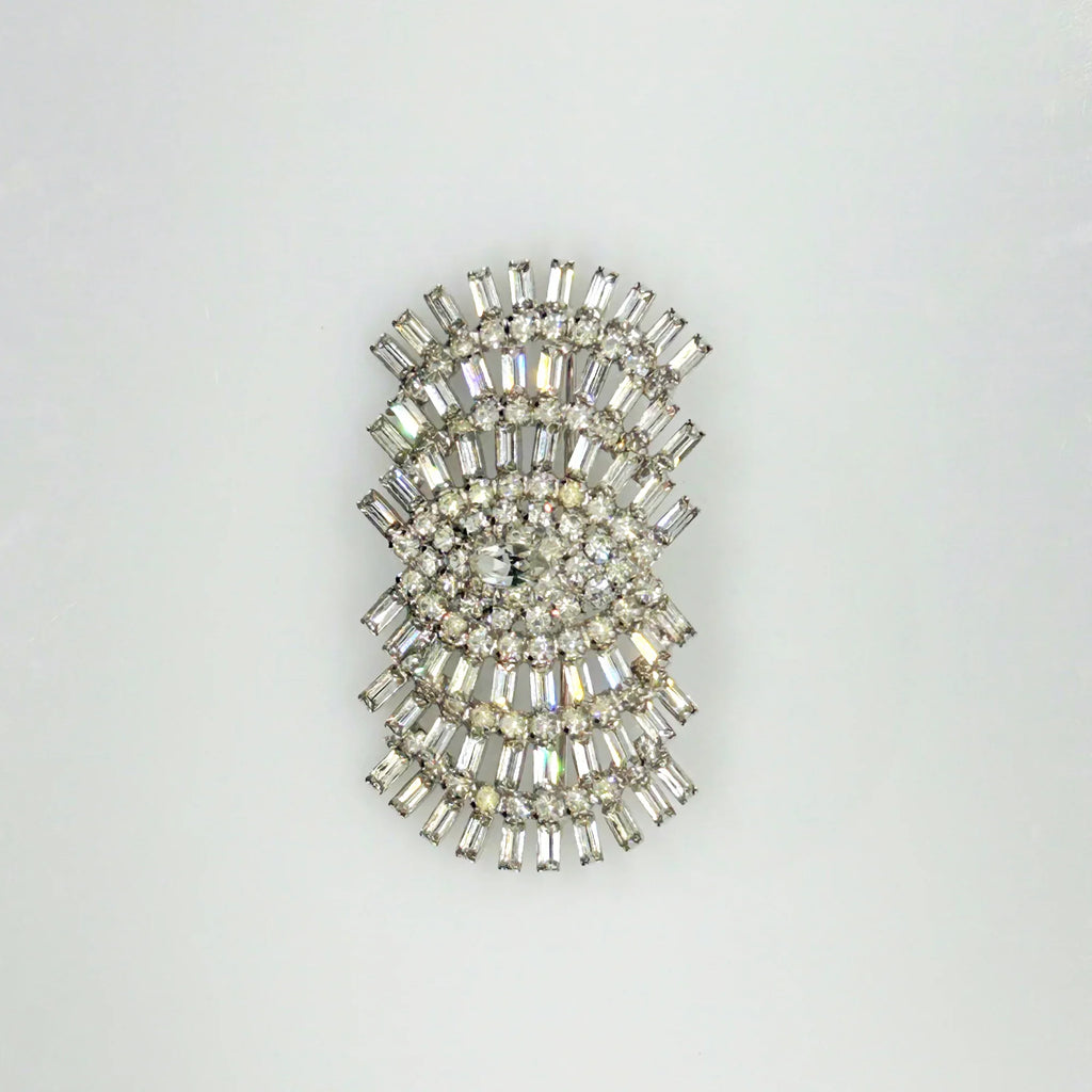 Geometric Deco Style Layered Vintage Rhinestone Brooch