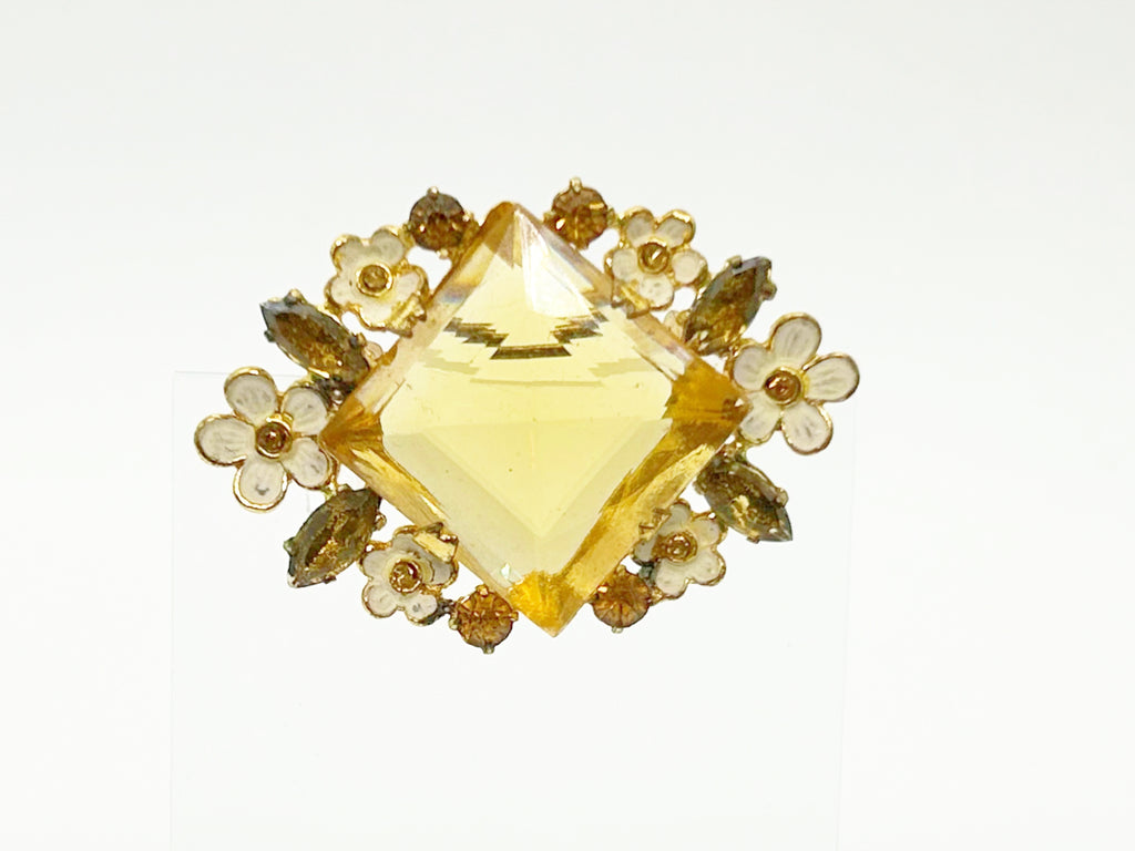 Antique Clear Yellow Stone Floral Czech Brooch