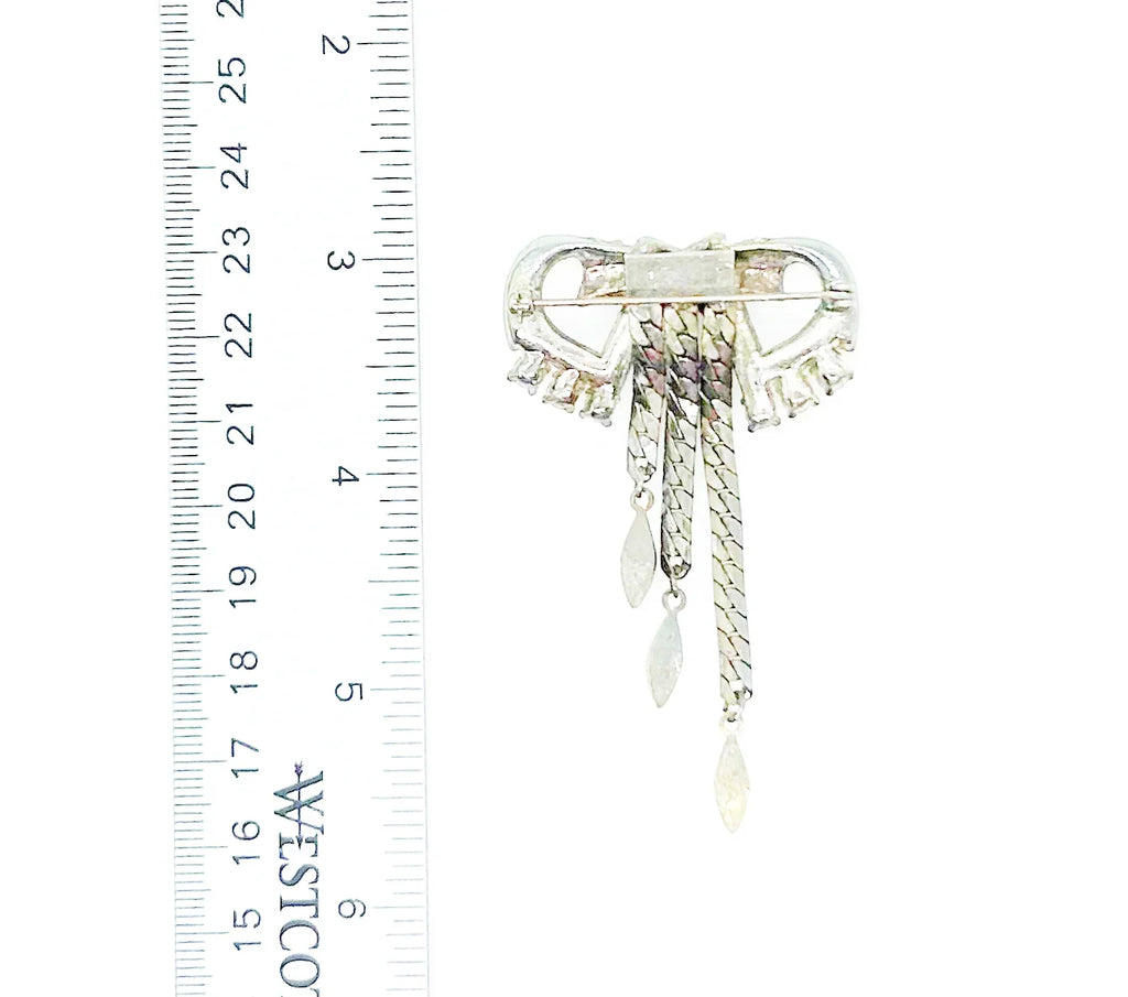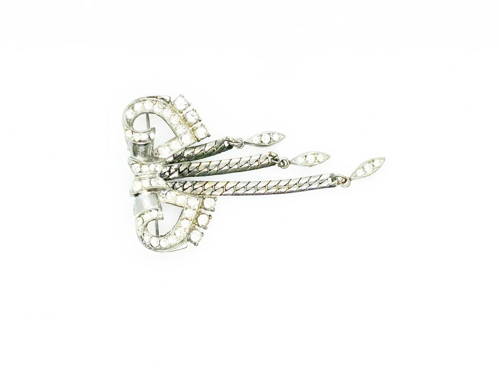 Vintage Art Deco Rhinestone Bow Brooch with Dangles