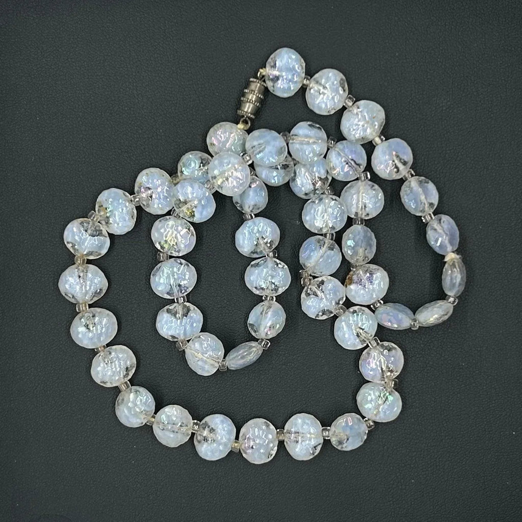 Clear and Pale Blue Gray Bead Vintage Necklace