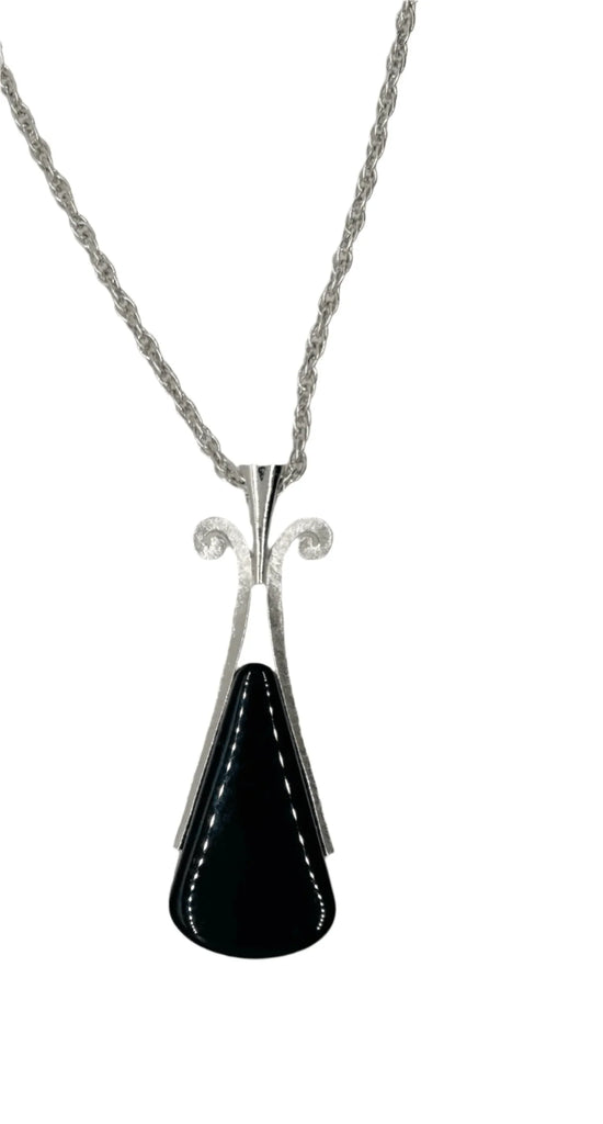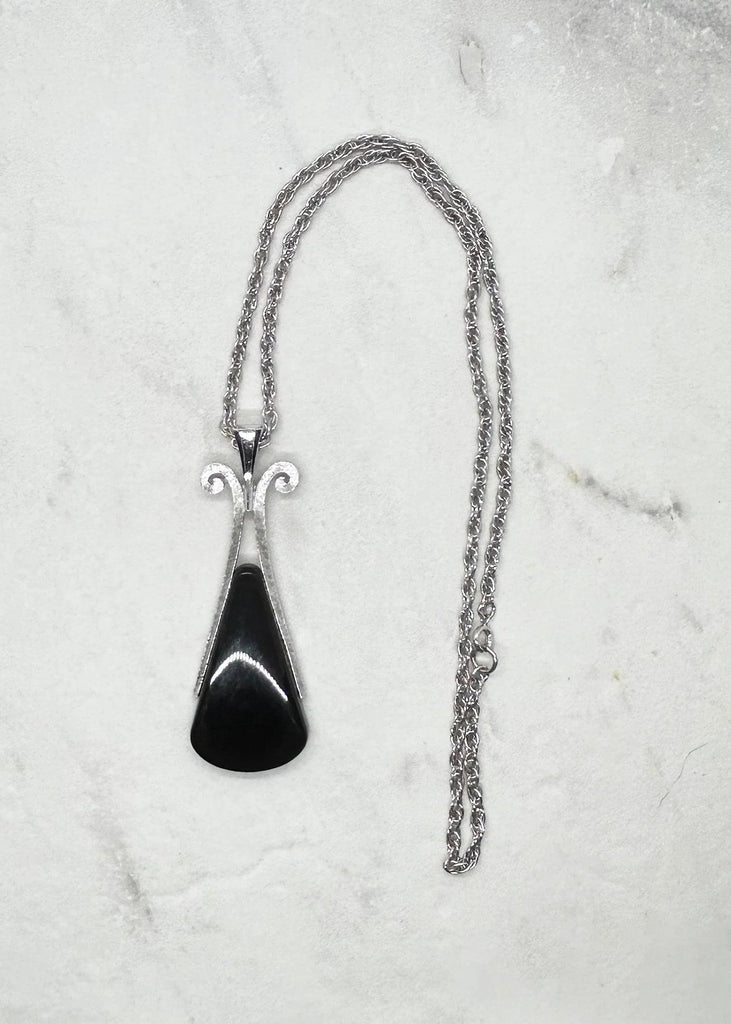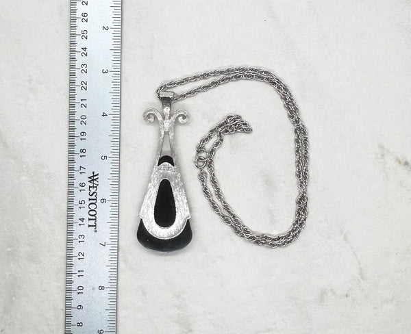 Vintage Avon Ebony Teardrop Pendant Necklace (1974)