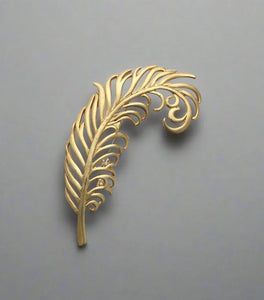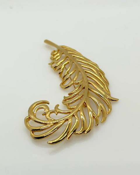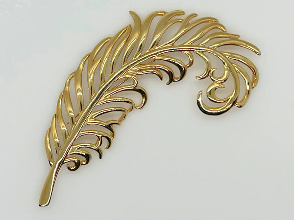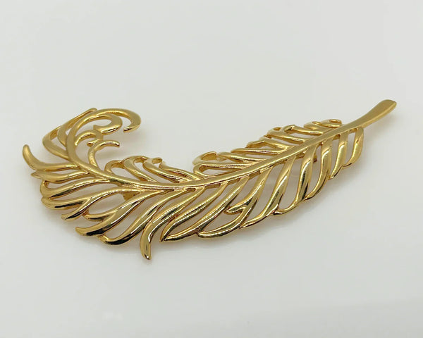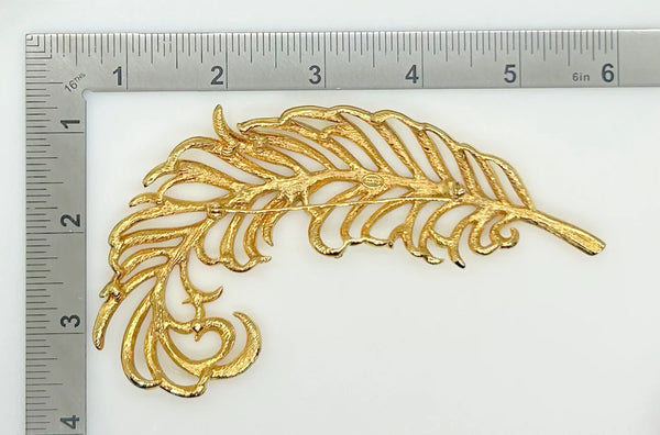 Sleek Vintage Craft Large Golden Feather Brooch