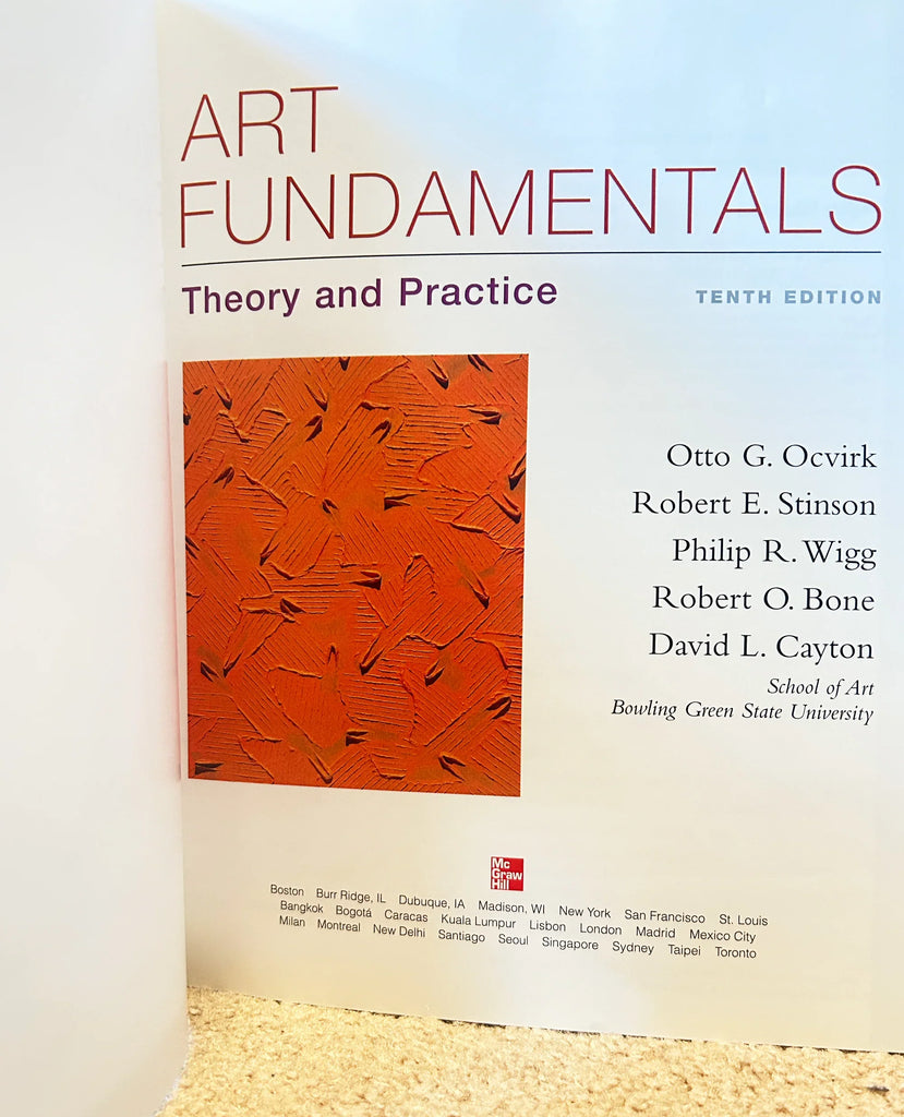Art Fundamentals: Theory and Practice, Tenth Edition textbook. It is a foundational text used in art courses, 10th Edition. Authors are Otto G. Ocvirk, Robert E. Stinson, Philip R. Wigg, Robert O. Bone, and David L. Cayton. It was published by McGraw-Hill Higher Education, ad was published 2005, 2006.