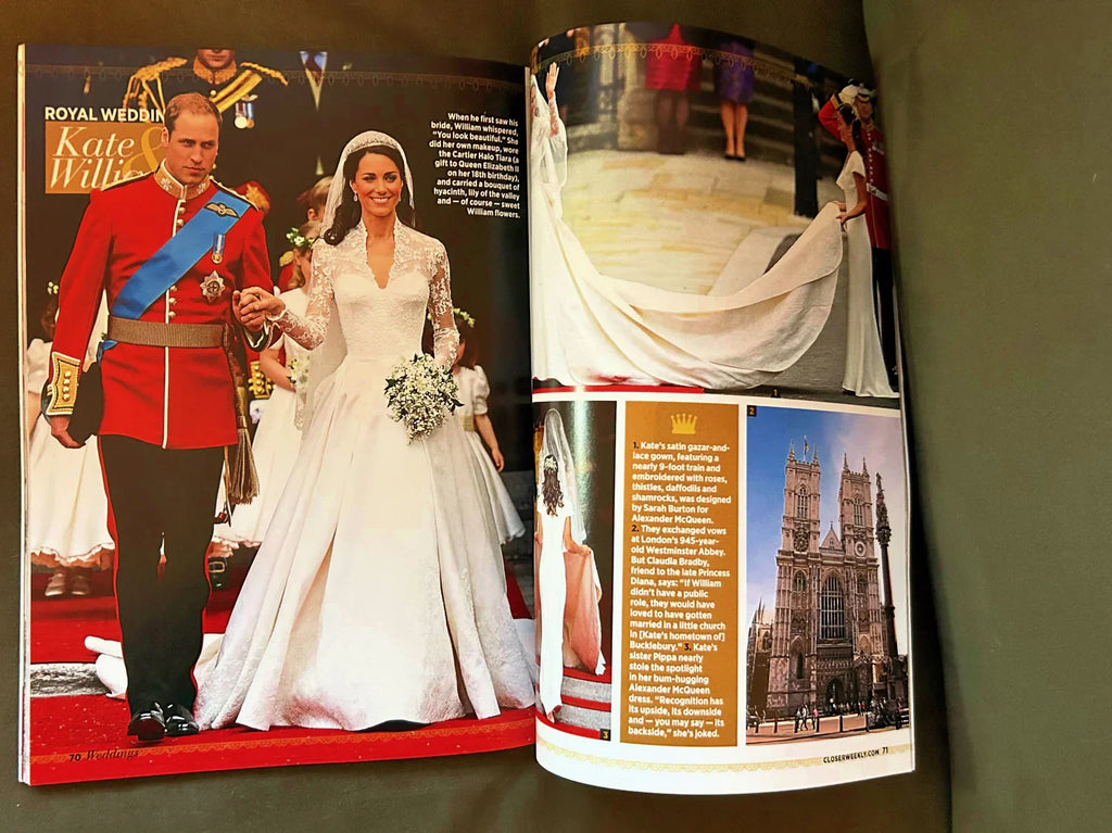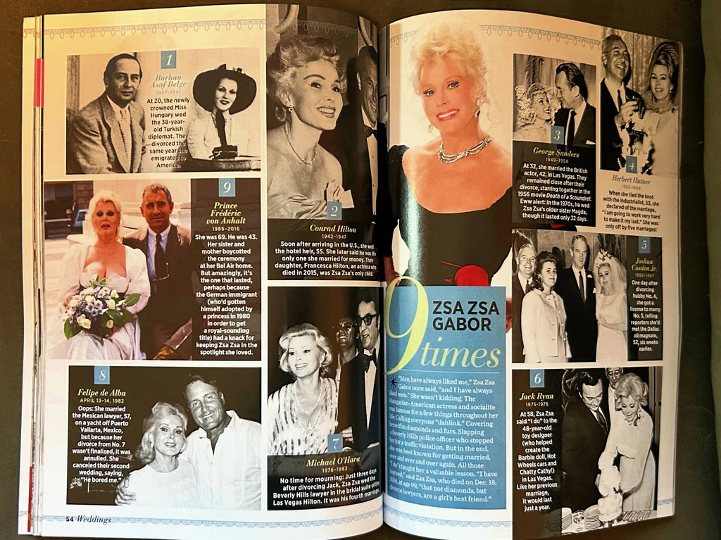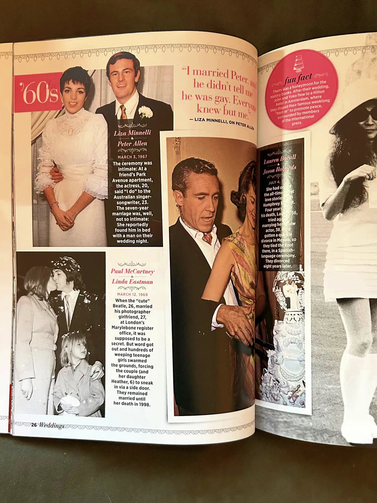 This is a great magazine filled with photos and details about celebrity weddings from the 1930s until the 2010s. The cover advertises 200+ Amazing photos from the 1930s until today (2017, when it was published) and it delivers. The weddings of movie stars, royals, music legends and politicians are detailed. And of course there is a massive focus on gowns and jewels. The volume contains 96 pages and is in very good condition.