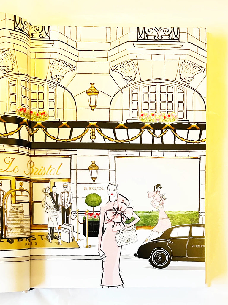 The book features Megan Hess's signature illustrations and reveals where iconic fashion figures such as Coco Chanel, Karl Lagerfeld, Christian Dior, and Louis-François Cartier worked and socialized. It serves as an insider's guide for any fashion enthusiast or Francophile,