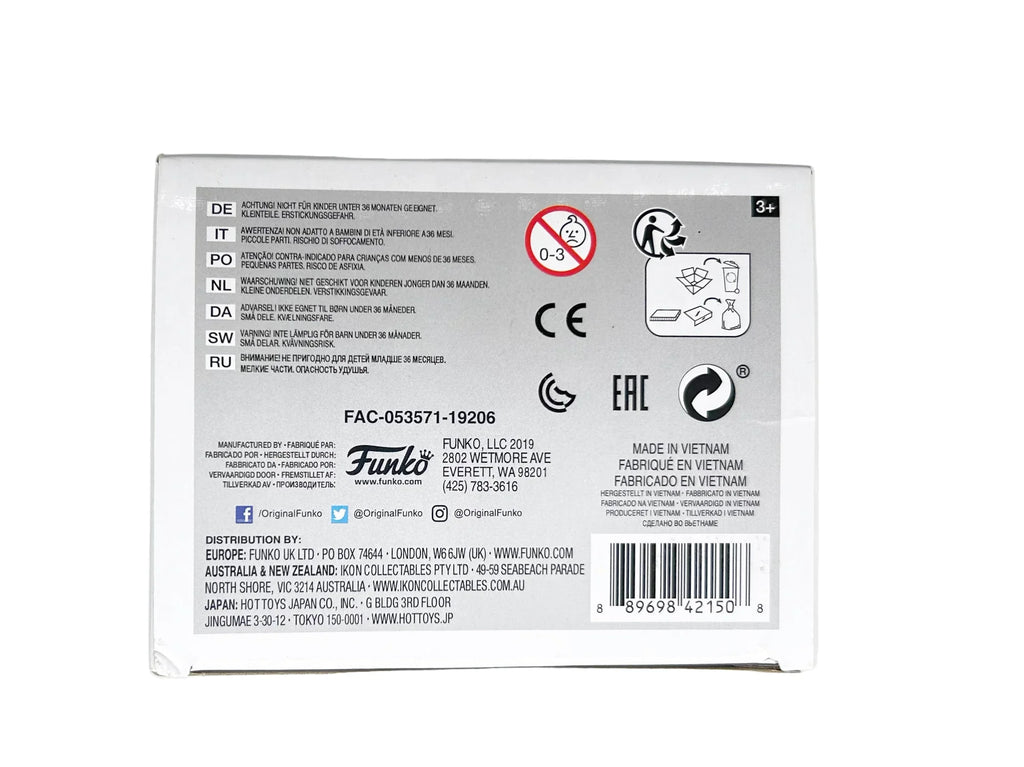 The figure was made in Vietnam and is suitable for ages 3+. It is vaulted, and never removed from the box. It is  FAC-053571- 19206., and the UPC is 889698421508.