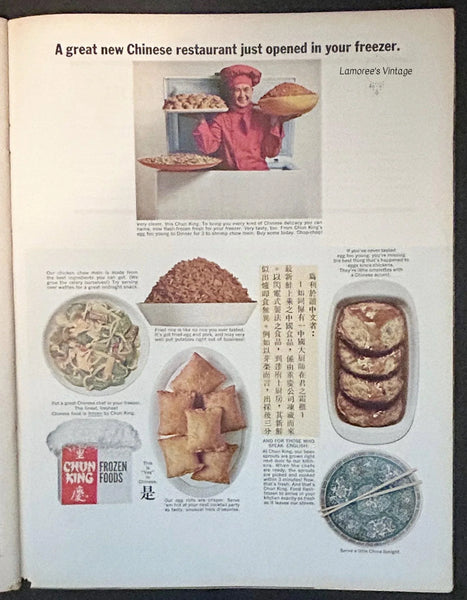 Ads: Frigidaire Dream Kitchen; Bell Telephone with new colorful; phones; "He-Man Soups" from Campbell's; Simmons Mattresses; Plymouth '63; Ninety Eight Oldsmobile; Nabisco Chocolate Cookies; A Diamond is Forever; Friskies Magic Sauce Cubes Cat Food; Borden's Cherry Vanilla Ice Cream, and more.