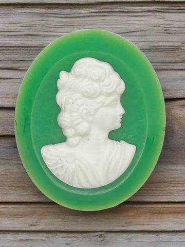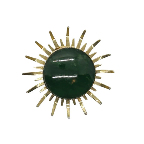 Vintage Green Oval Cabochon Brooch with Textured Setting