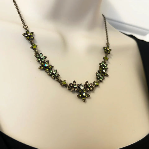 Pretty VCLM Floral Necklace with Green Rhinestones
