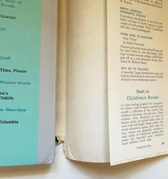 The 160 pages and dust jacket will transport you to a simpler time, filled with wonder and enchantment. This is number 29 in the long running and beloved vintage book series published by Nelson Doubleday “Best in Children’s Books". This volume was printed in 1960, in the United States, and contains 160 pages and has its dust jacket. The spine of the dust jacket does have a tear.