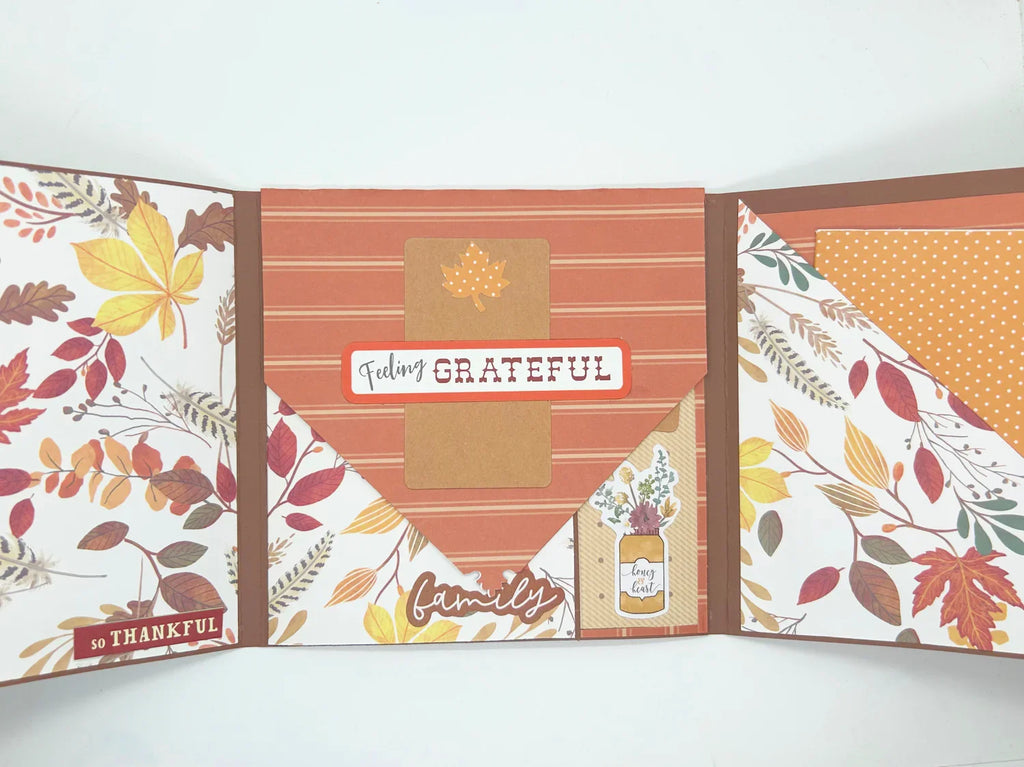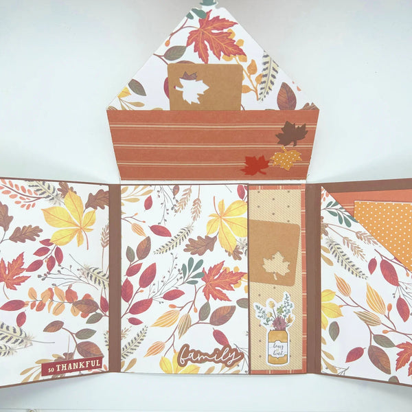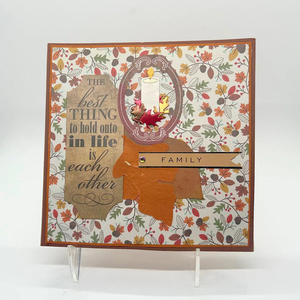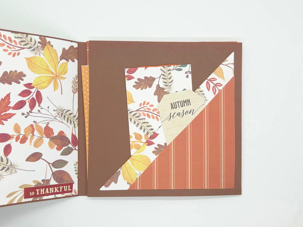 Indulge in the cozy atmosphere of fall with this handcrafted journal album. Each section is thoughtfully designed with a unique theme and includes slots for your treasured keepsakes. At 6 x 6", it's the perfect size to display and share your memories with loved ones. Keep the sights and scents of autumn alive for years to come with this treasured gift.