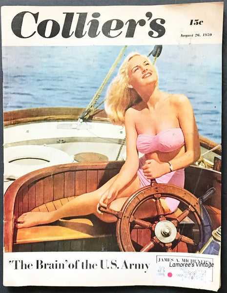 Featuring 90 pages, the August 26, 1950 issue of Collier's magazine is in good condition for its age and contains a range of vintage ads, articles, fiction, and features, as well as advertisements of the era.