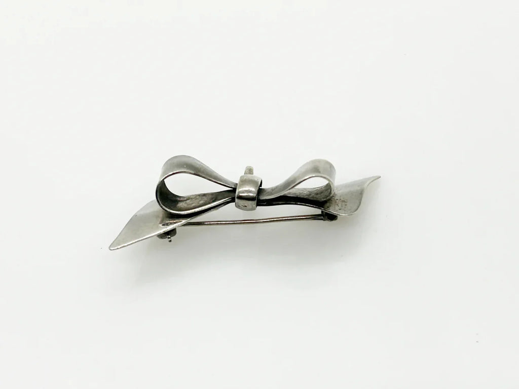 Adding a touch of gracefulness to any outfit with this versatile bow brooch/pendant. It is crafted with intricate detail in a delicate bow. The pin can be worn on clothing, hats or scarves, which makes it so versatile and adds a touch of sophistication. It measures 1 1/2" x 1/4" and is in excellent condition.Nurses in days past would attach a watch to the bow to keep it handy but also out of the way.