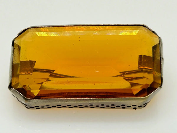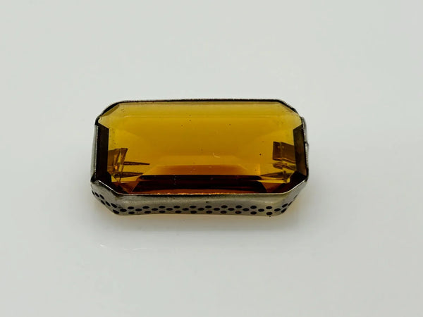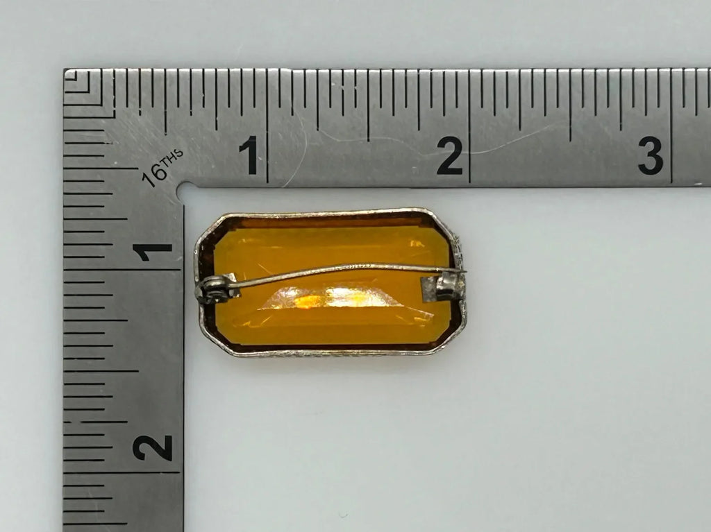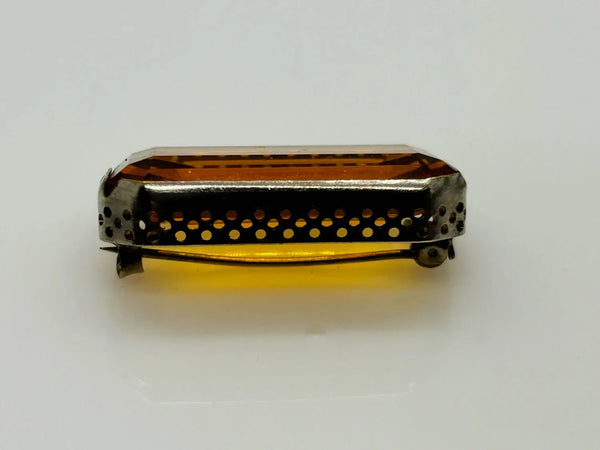 Citrine Colored Glass Rectangular Art Deco Bar Brooch