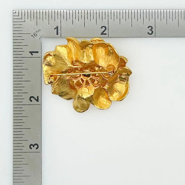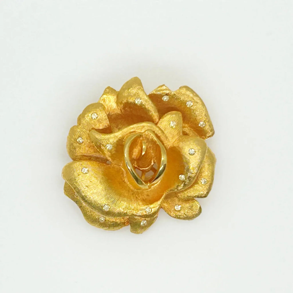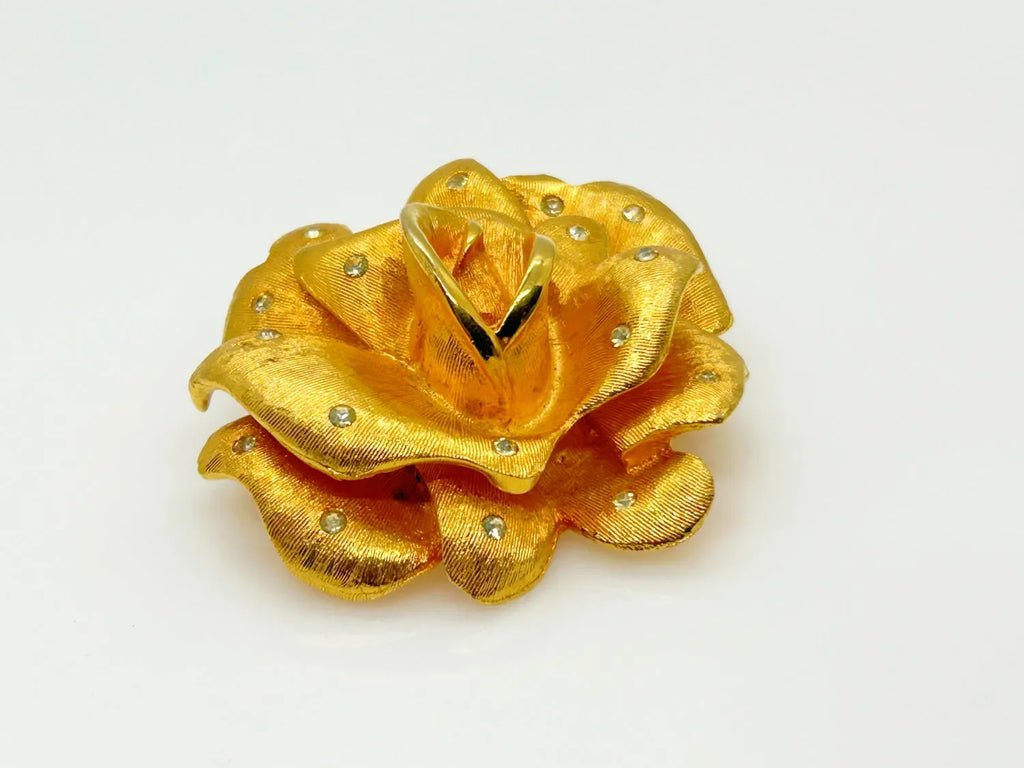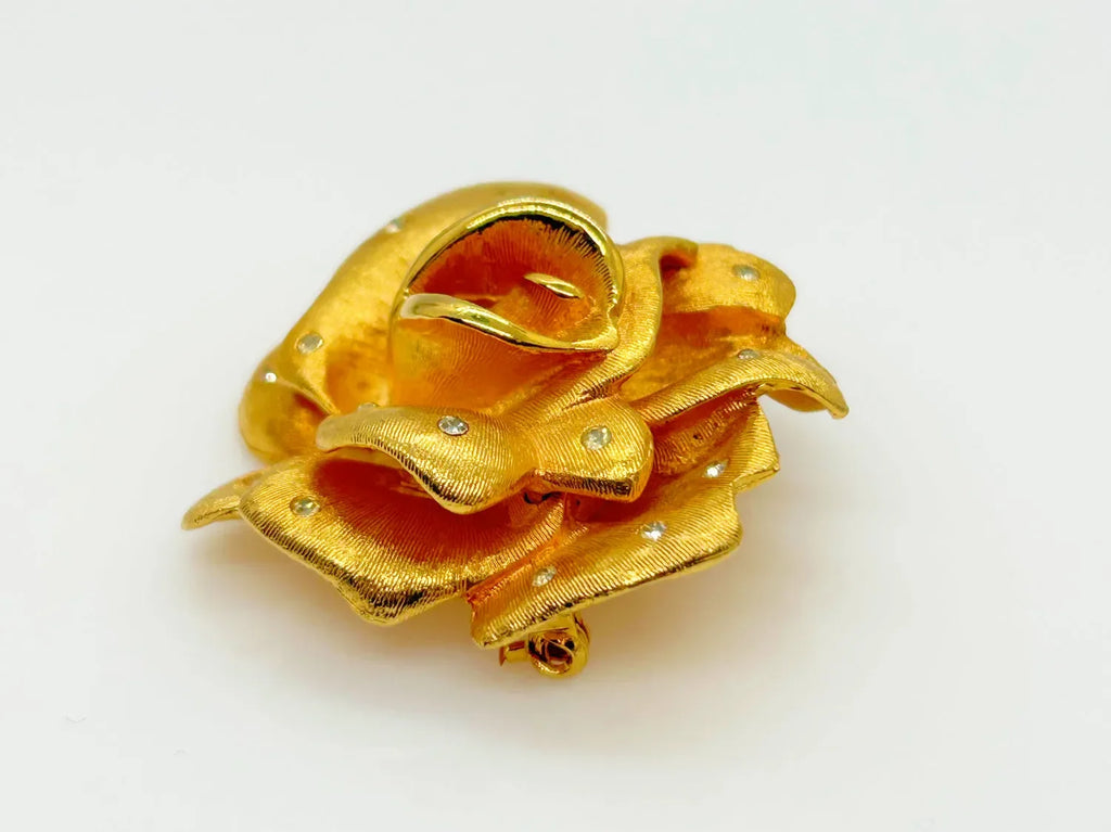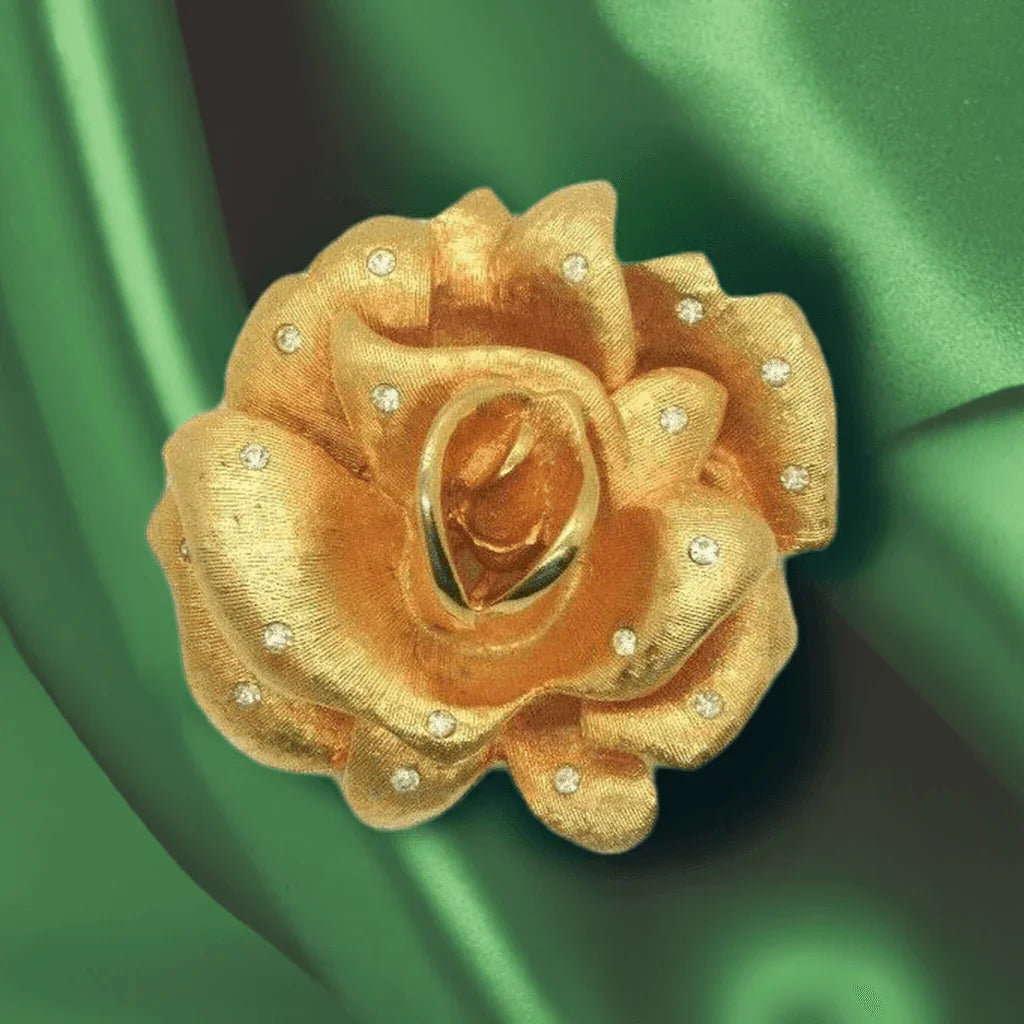 Elegant Vintage Gold Rose Brooch with Sparkling Accents