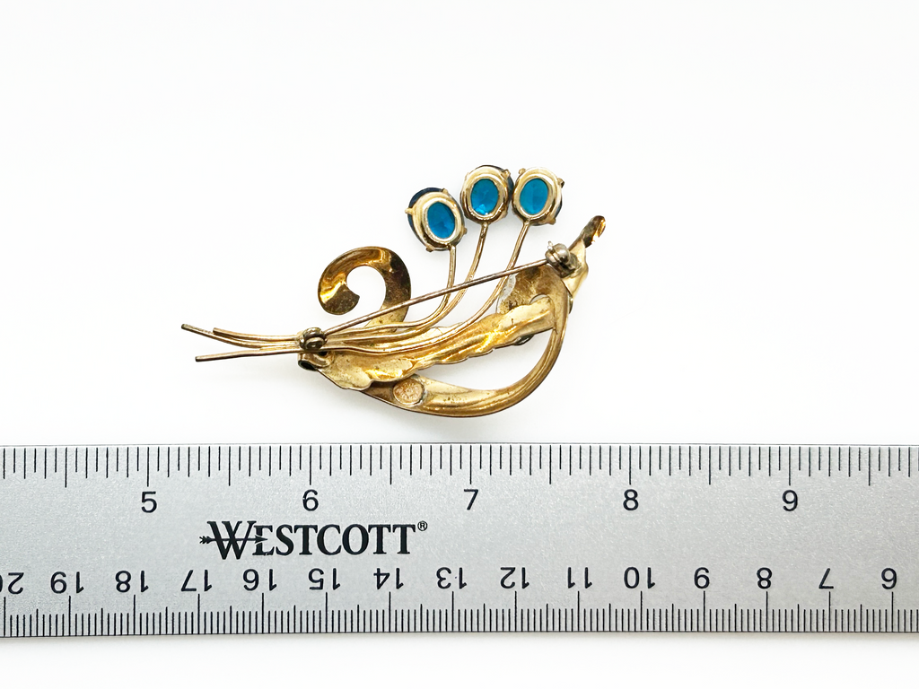 Striking Gold Filled Oval Teal Blue Vintage Flower Spray Brooch