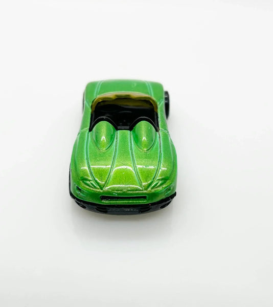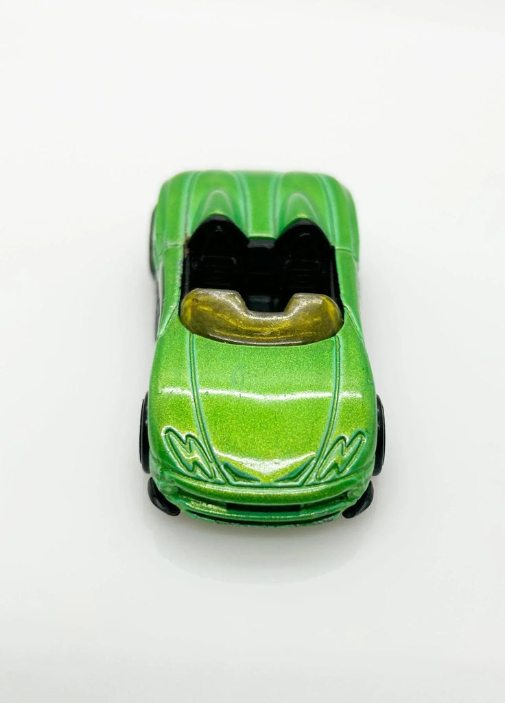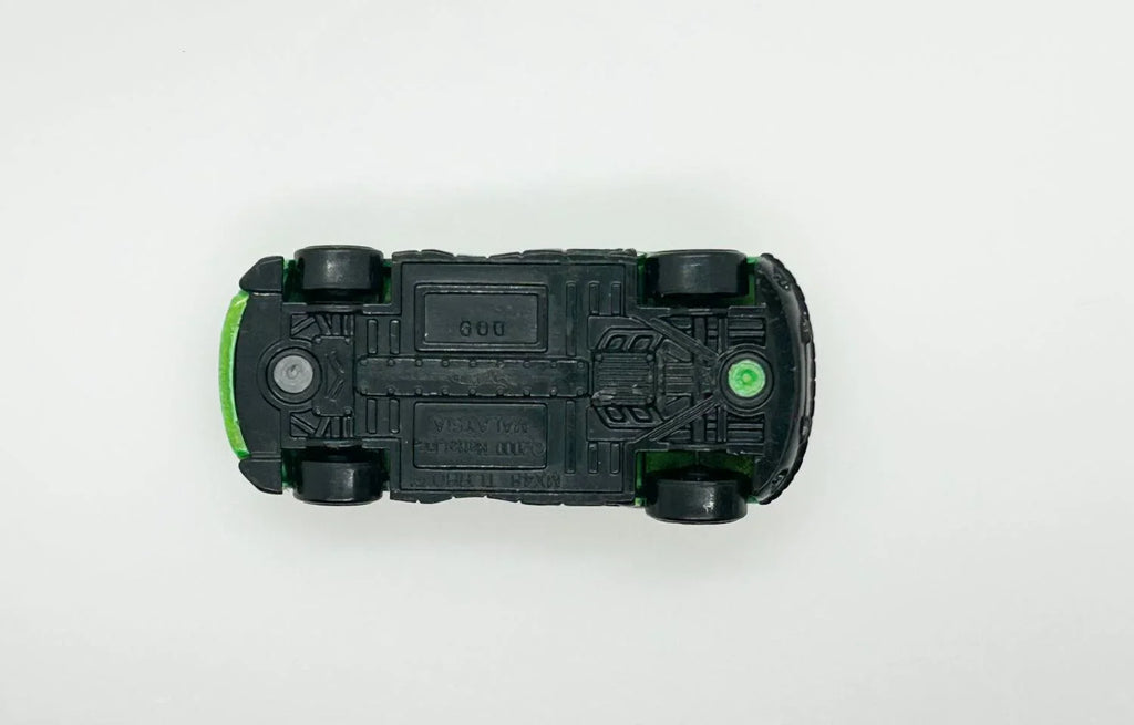 Mystery Models, Spectraflame green with black, silver tampos with "MX48". It has clear yellow windshield and black interior, and was designed by Eric Tscherne and Alton Takeyasu. Made in Malaysia.