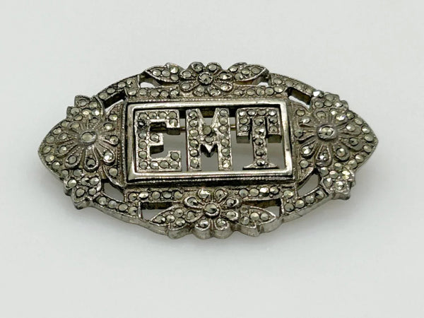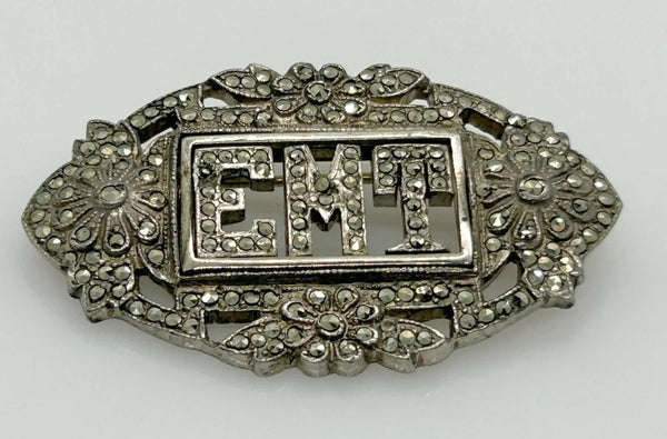 Here is an old fashioned vintage brooch set with marcasites and the initials EMT.. It is an excellent example of these initial pins which were so popular in the late 19th-early 20th century. It would also be a unique gift for a first responder !