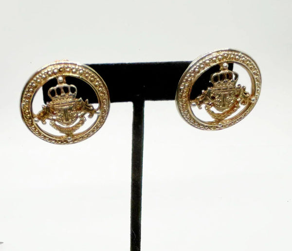 Ivana Coat of Arms Heraldic Clip On Earrings (1990s)
