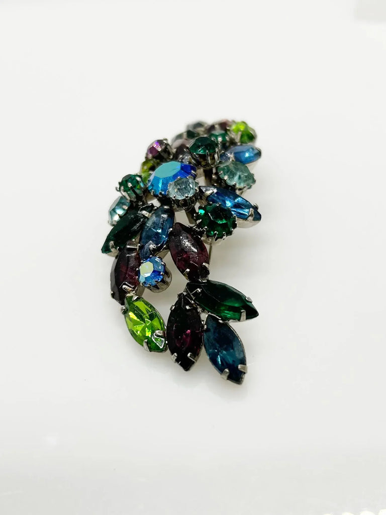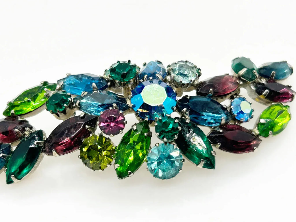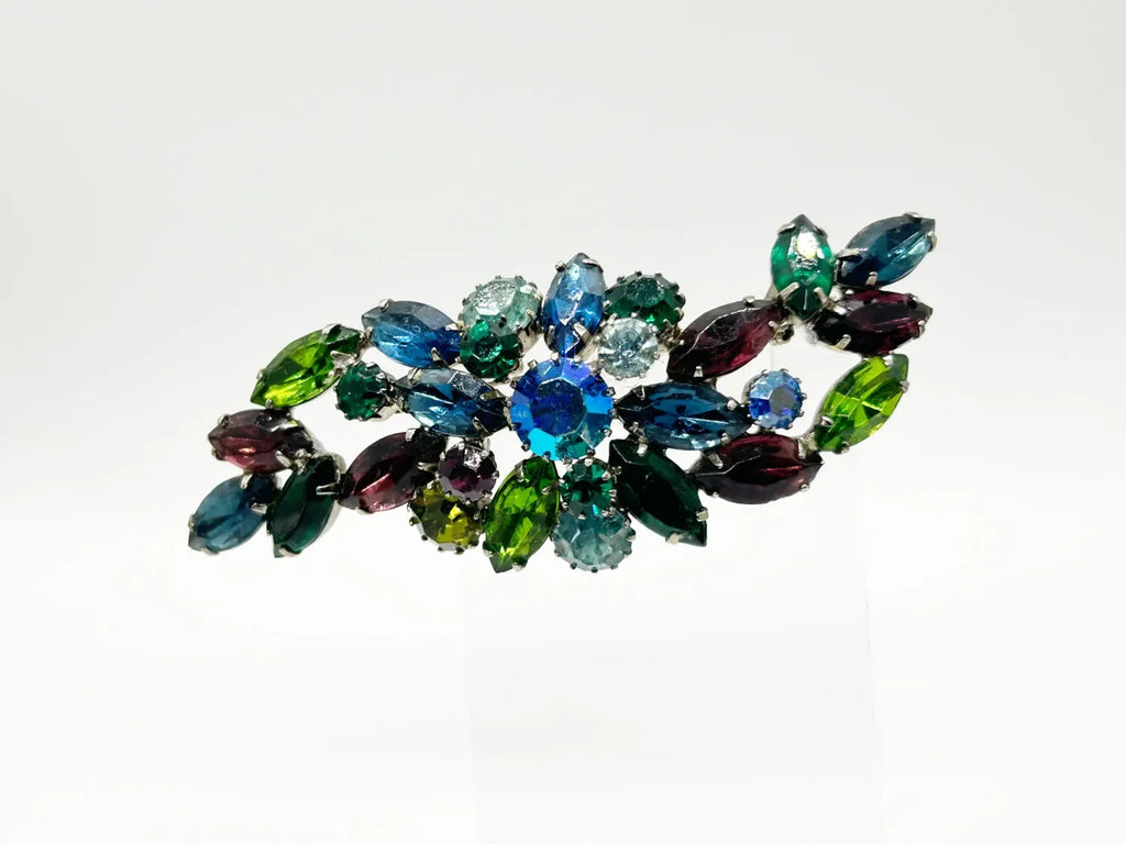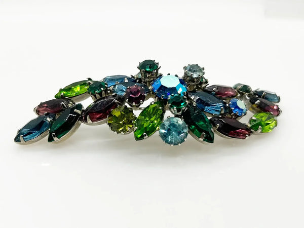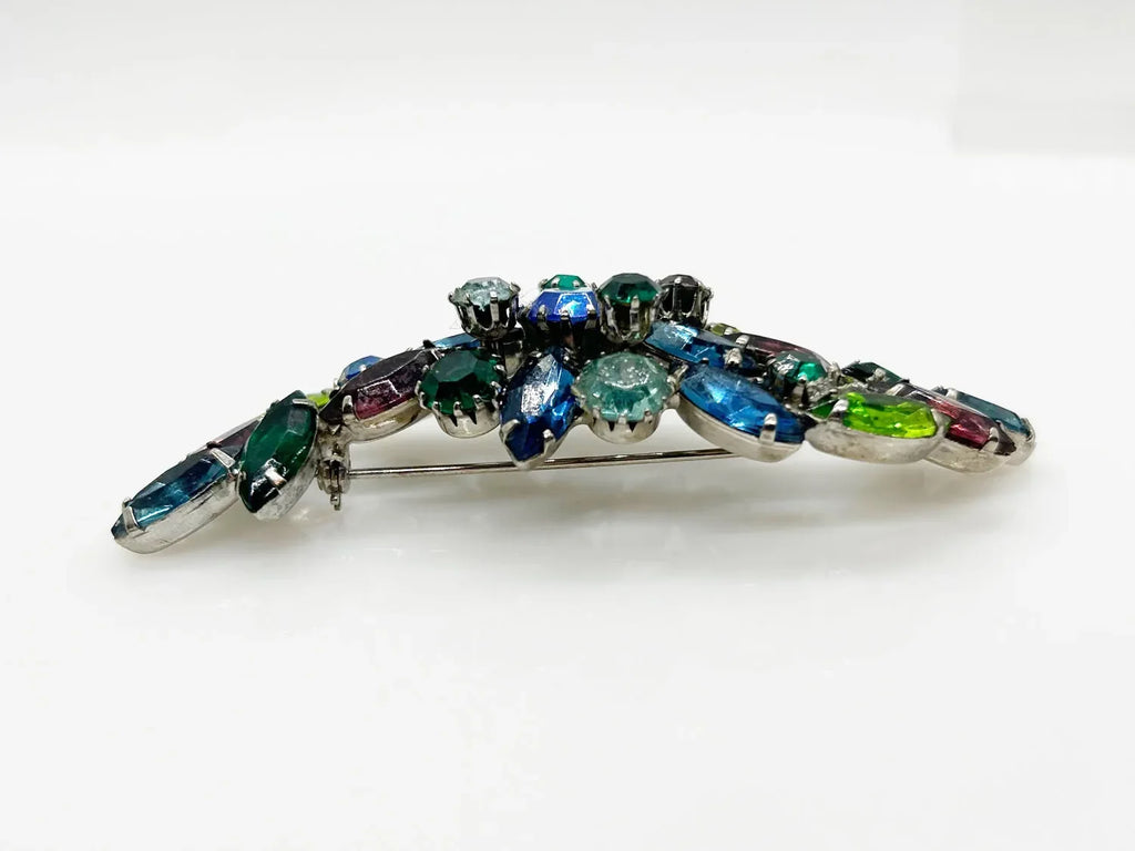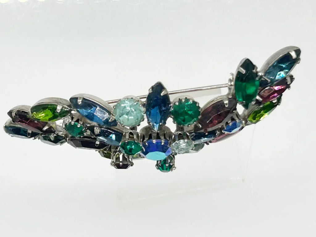 Magnificent Large Swooping Multi Color Vintage Rhinestone Brooch