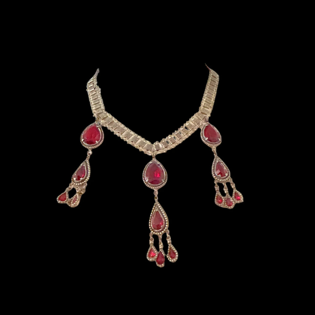 Ornate Vintage Drop Necklace with Red Stones: All Heads Will Turn!
