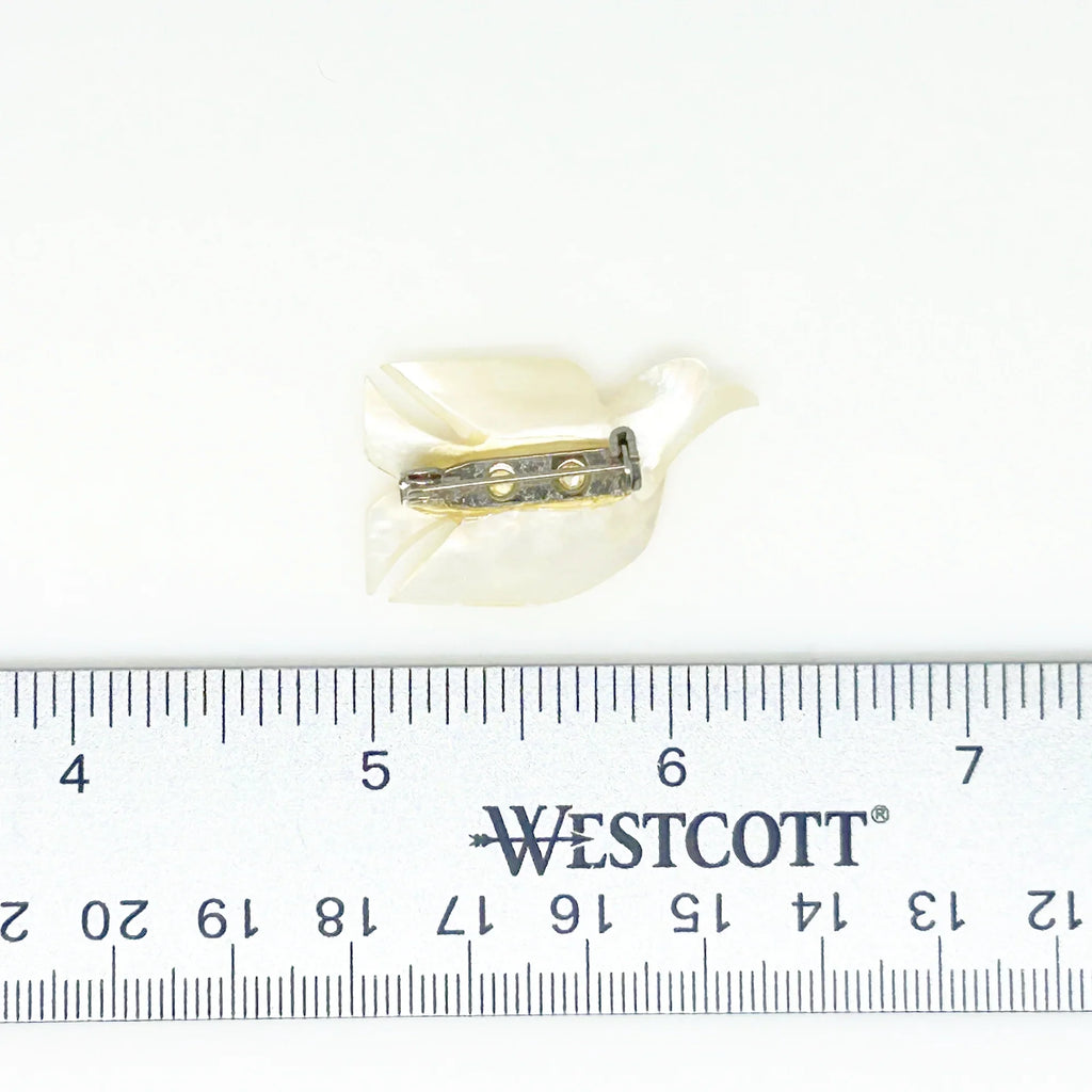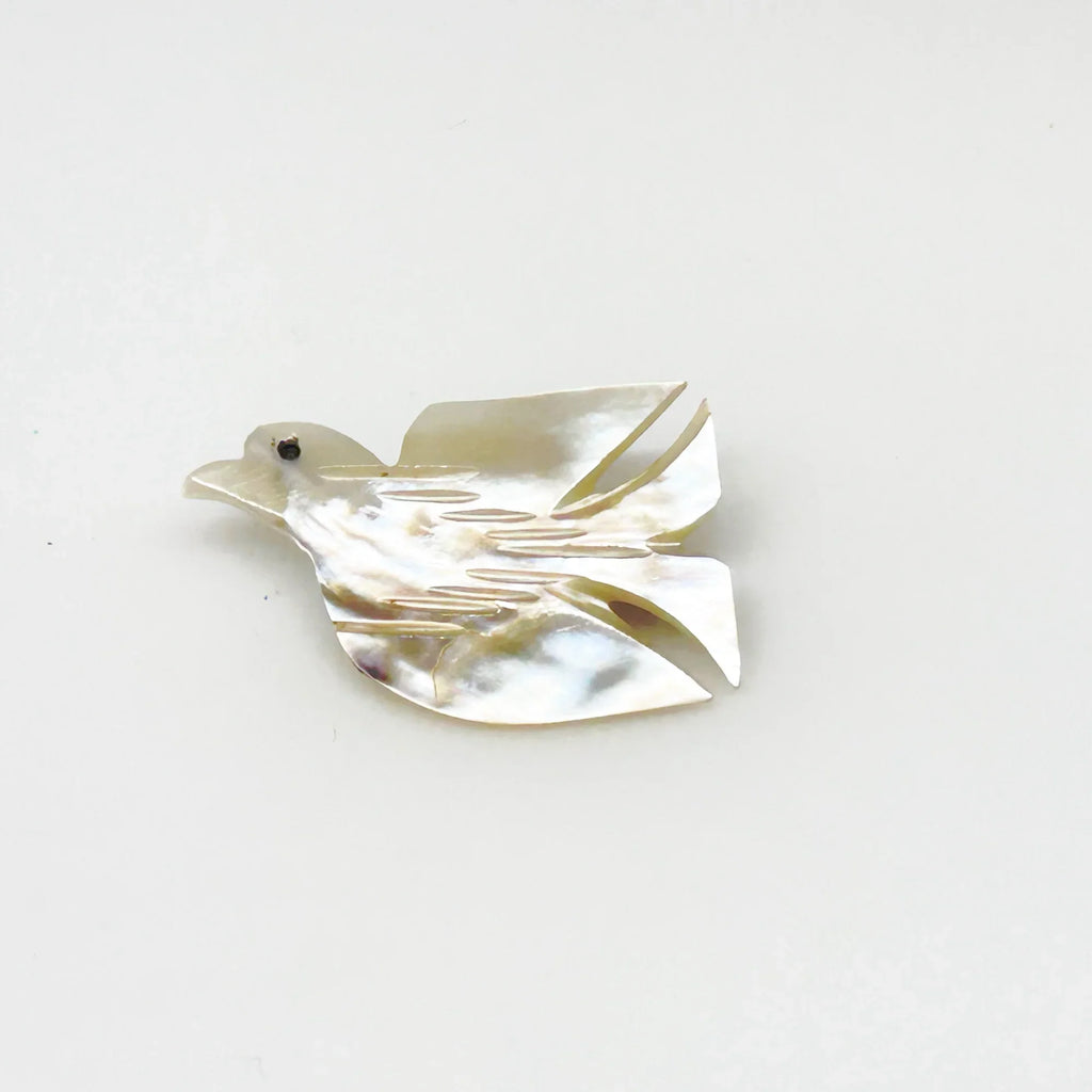 Hand Carved Vintage Mother of Pearl Peace Dove Pin- 1960s