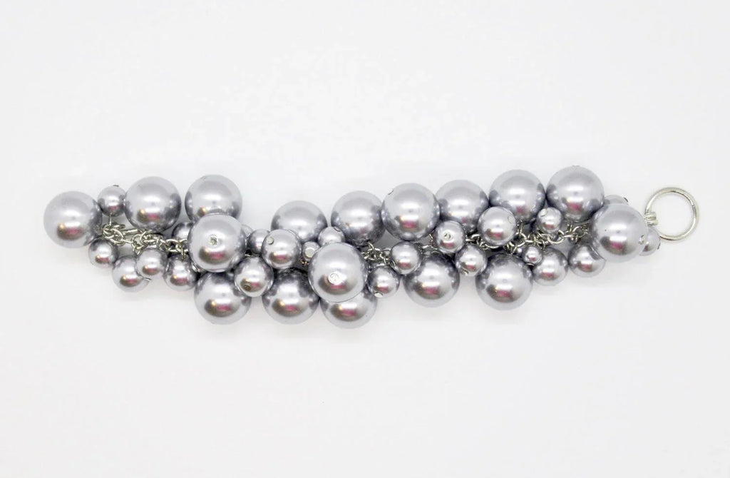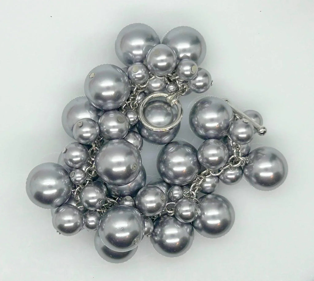 Dramatic Rich Gray Faux Pearls Cluster Ball Bracelet - Lamoree’s Vintage