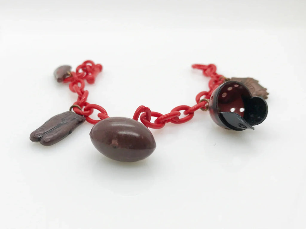 Featuring an authentic 1930s vintage design, this football bracelet stands out with its vibrant red link chain. It adds bold color and style to your wrist, making it a unique piece among nfl charms for bracelets.