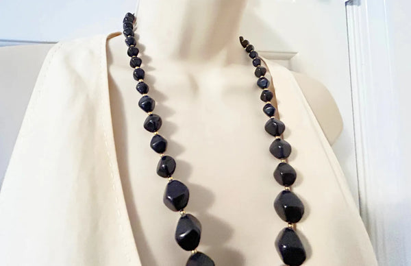 Vintage Avon "Modern Art" Graduated Chunky Black Bead Necklace (1986)