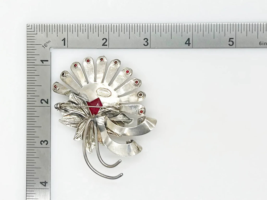 Vintage Brookcraft Sterling Silver & Red Brooch