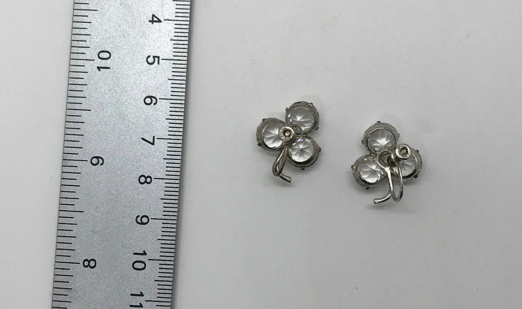 Experience the beauty and elegance of these Vintage Sterling and Crystal Clover Earrings! Each earring boasts three dazzling, prong-set crystals that radiate pure light, set in glossy sterling silver for a stunning finish. With screw-back closures and measuring .75" in each direction, these earrings are in excellent condition, ready to elevate any outfit with their timeless charm.