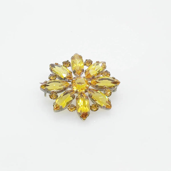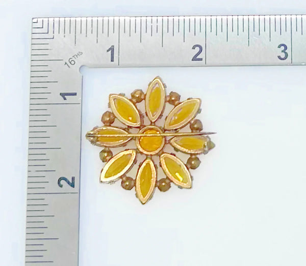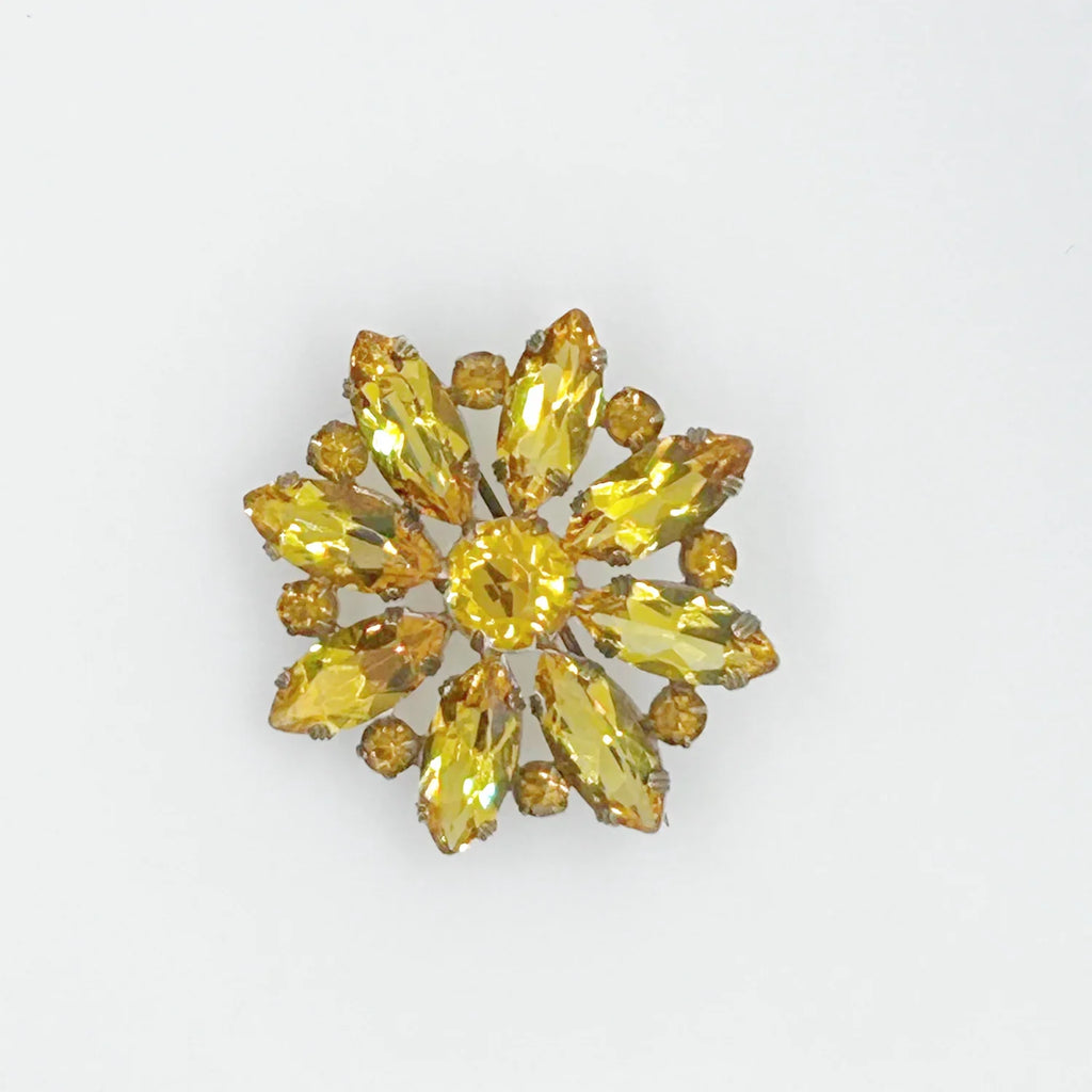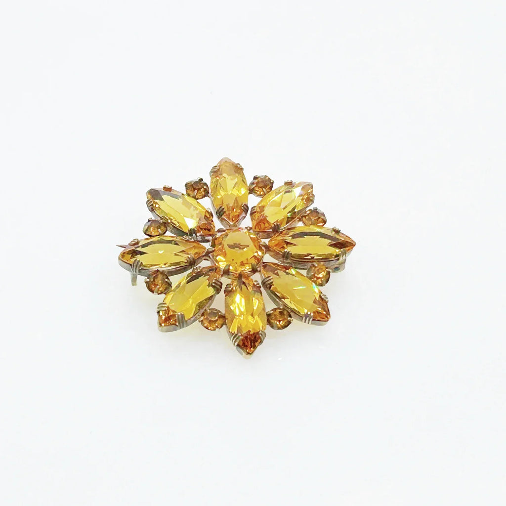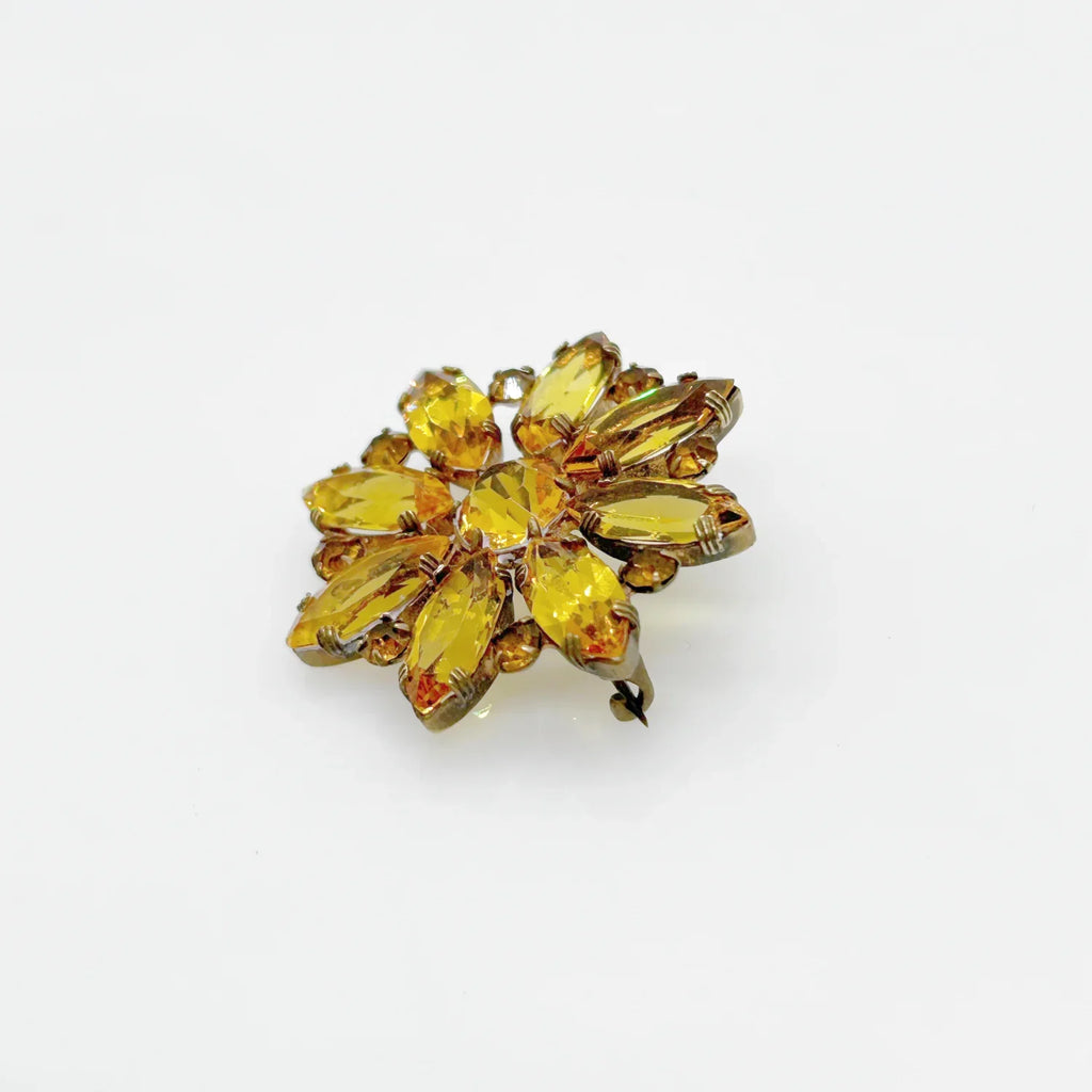 A true treasure for any jewelry collector, this antique floral pin will be a favorite before long. The stunning design features a combination of faceted and open back stones, lending a captivating sparkle to any outfit. Carefully crafted with secure double prongs, this brooch is perfect for day or evening wear, measuring 1 1/2" for a noticeable yet understated touch of elegance.
