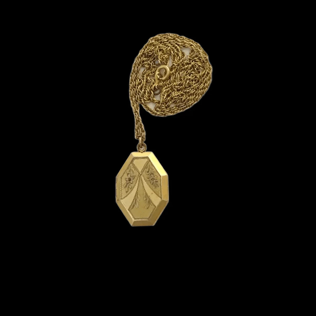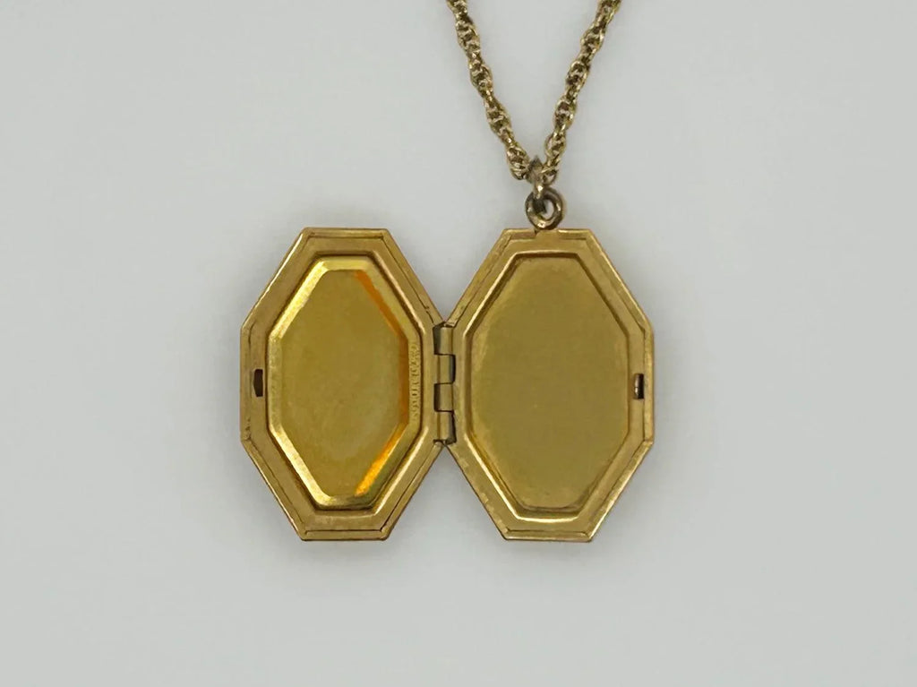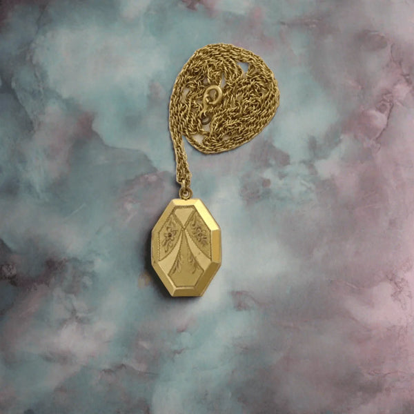 Vintage Geometric Octagonal Gold Filled Art Deco Locket with Chain/sold etsy