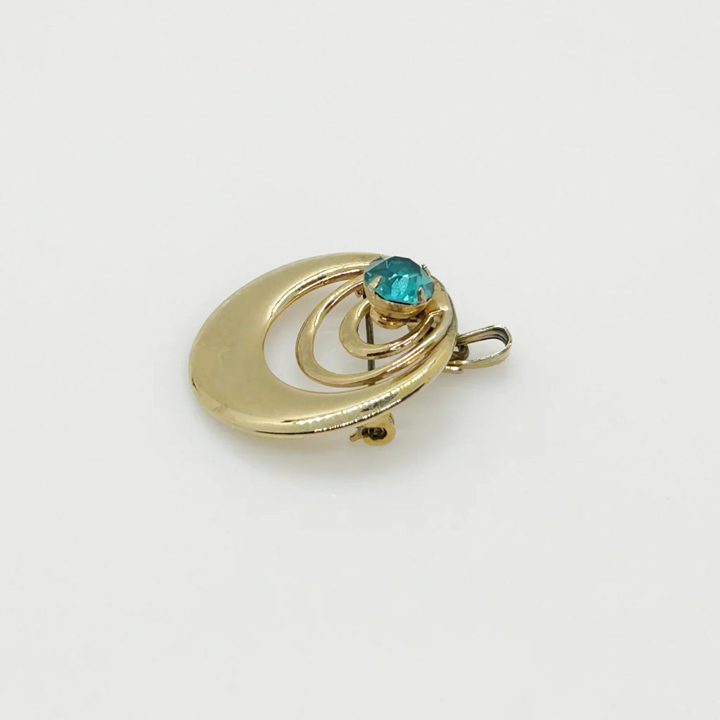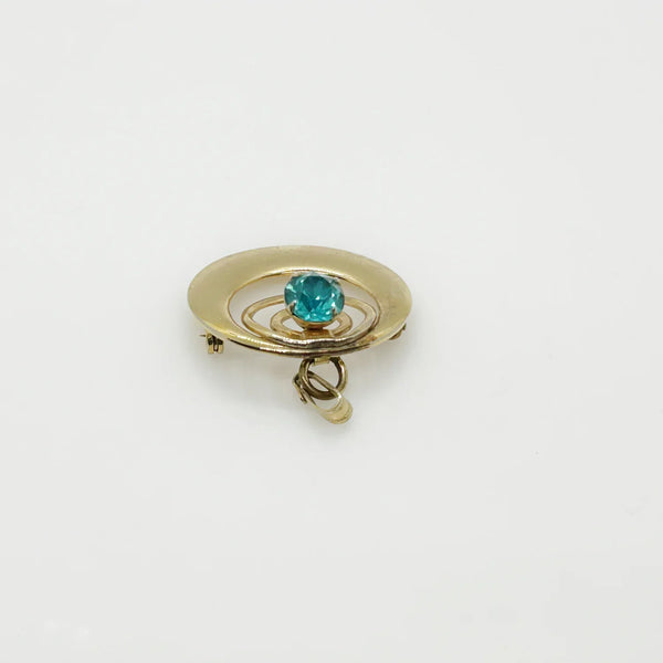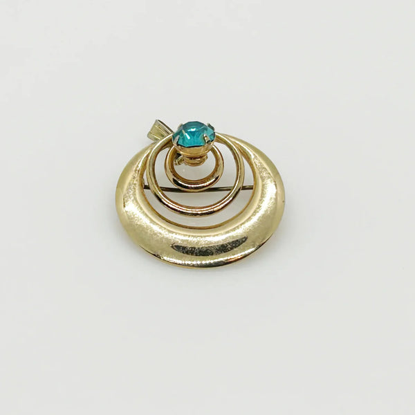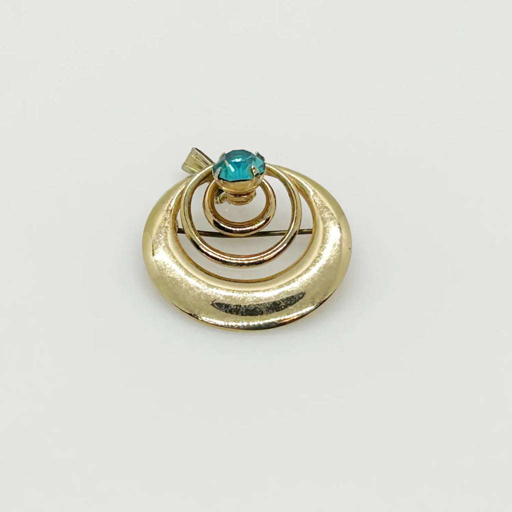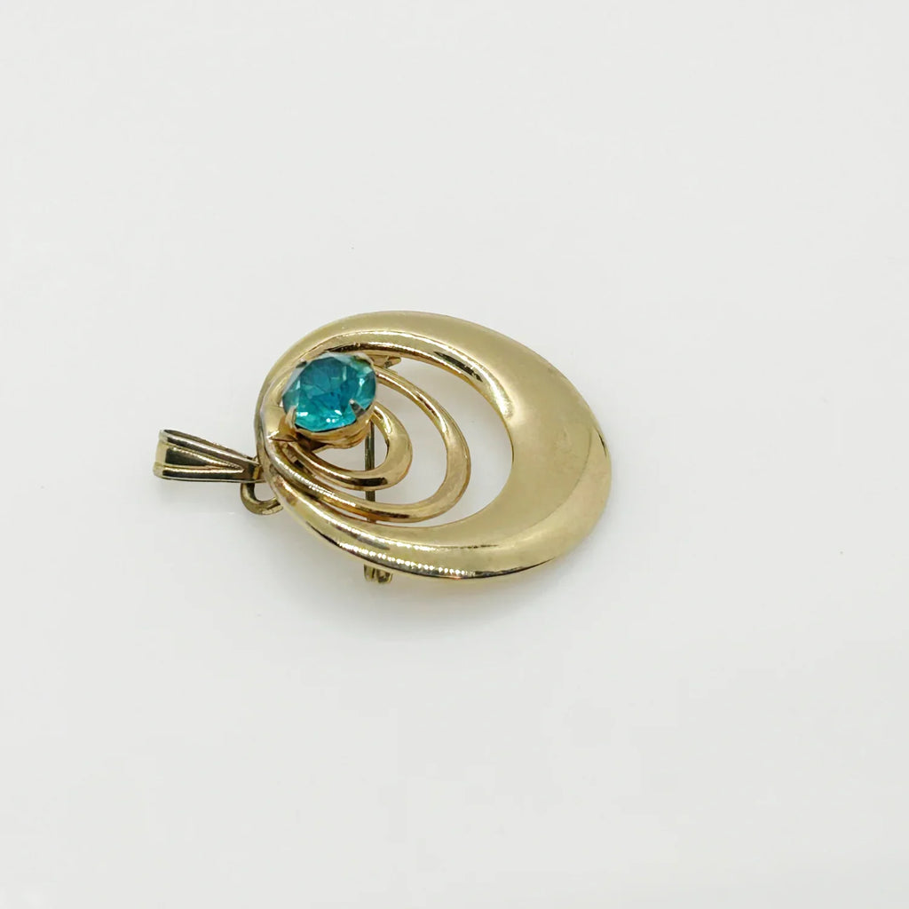 Vintage Pin/Pendant with Circles and Aqua Stone