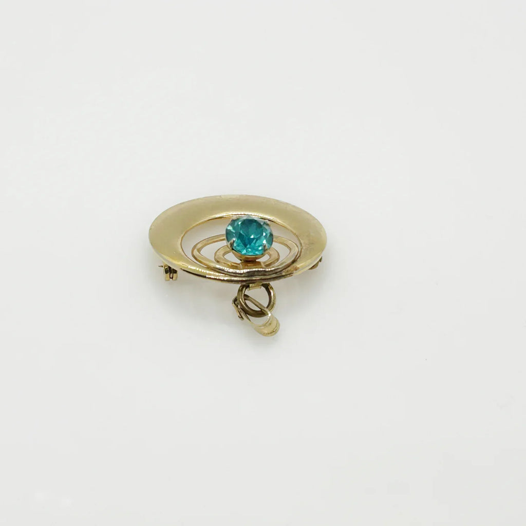 Transform any outfit with our stunning Vintage Pin/Pendant! Featuring beautiful circles and sparkling aqua stones, this piece will add a touch of elegance and charm to your look. Wear it as a pin on your lapel or as a pendant on a delicate chain.
