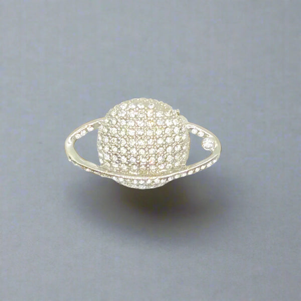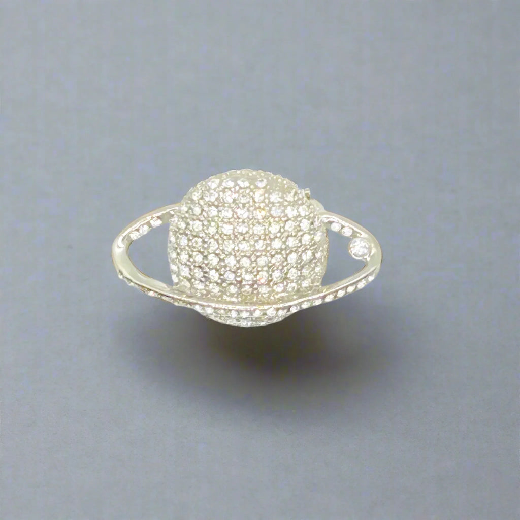 Dazzling Retro Vintage Clear Rhinestone Planet Saturn Brooch