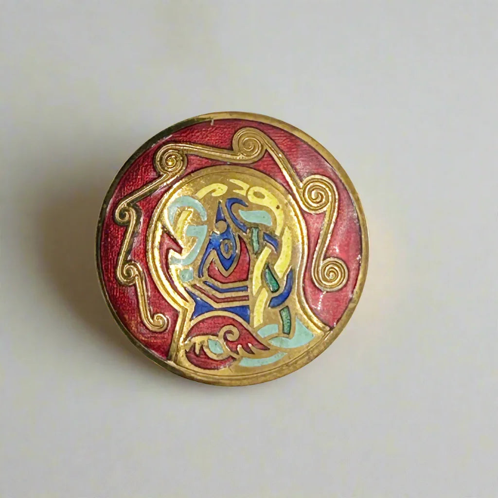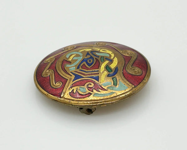 Vintage Tara Round Enamel Celtic Brooch- Pendant