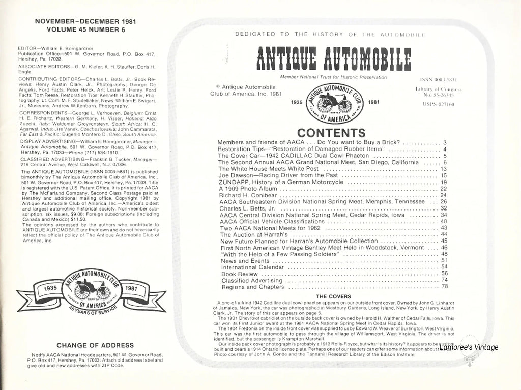 Don't Miss Out-Buy Antique Automobile Magazine November December 1981 – Lamoree’s Vintage