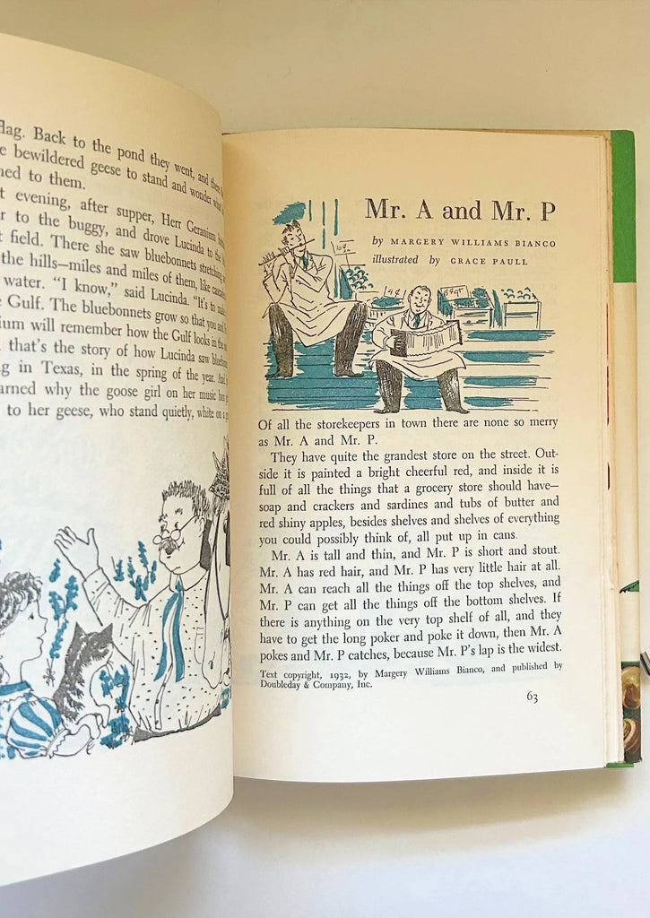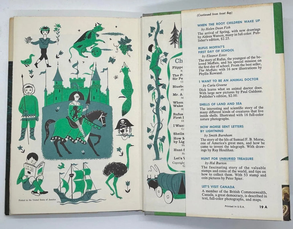You’ll find a gamut of tales and topics in this vintage children’s book, such as Flipper, being a veterinarian, visiting Canada, and an especially good selection of stories. It was printed in the U.S.A., and has 160 pages, many with wonderful illustrations.
