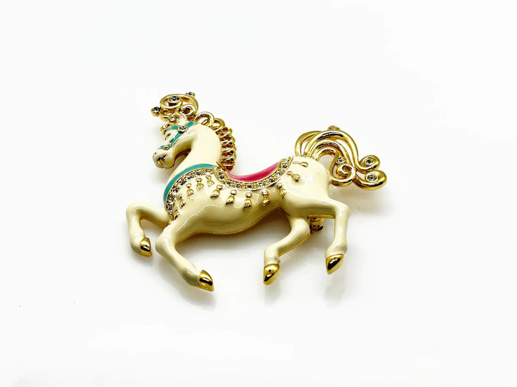 Bob Mackie Prancing Carousel Horse Brooch (1980s)