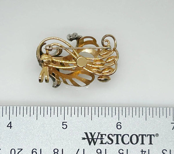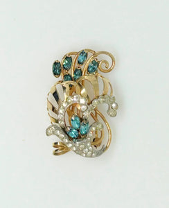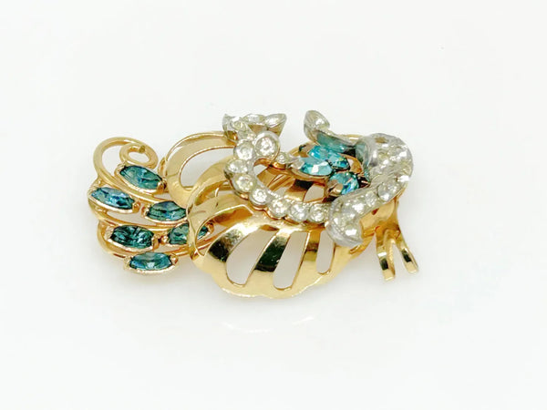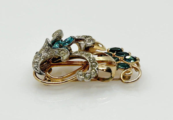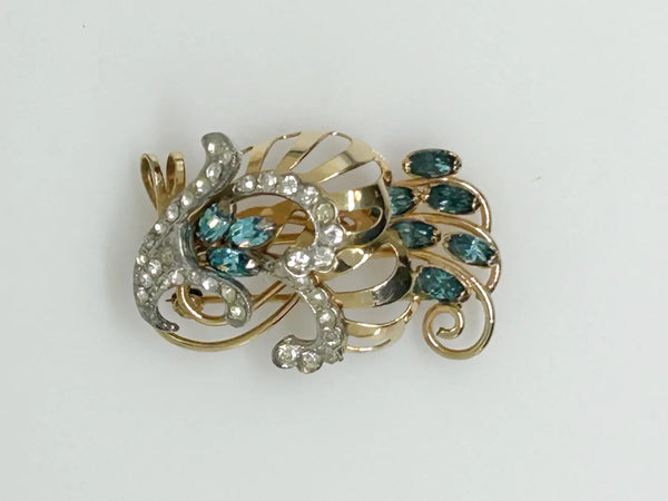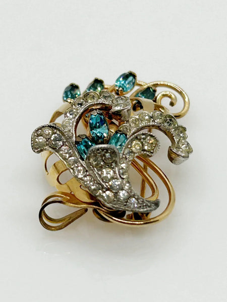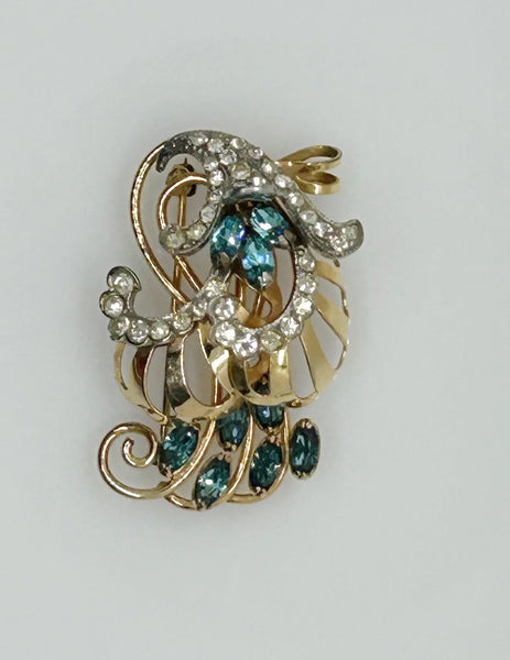 Charles Reis 12k Gold Filled Brooch Pin/Pendant with Clear and Blue Rhinestones